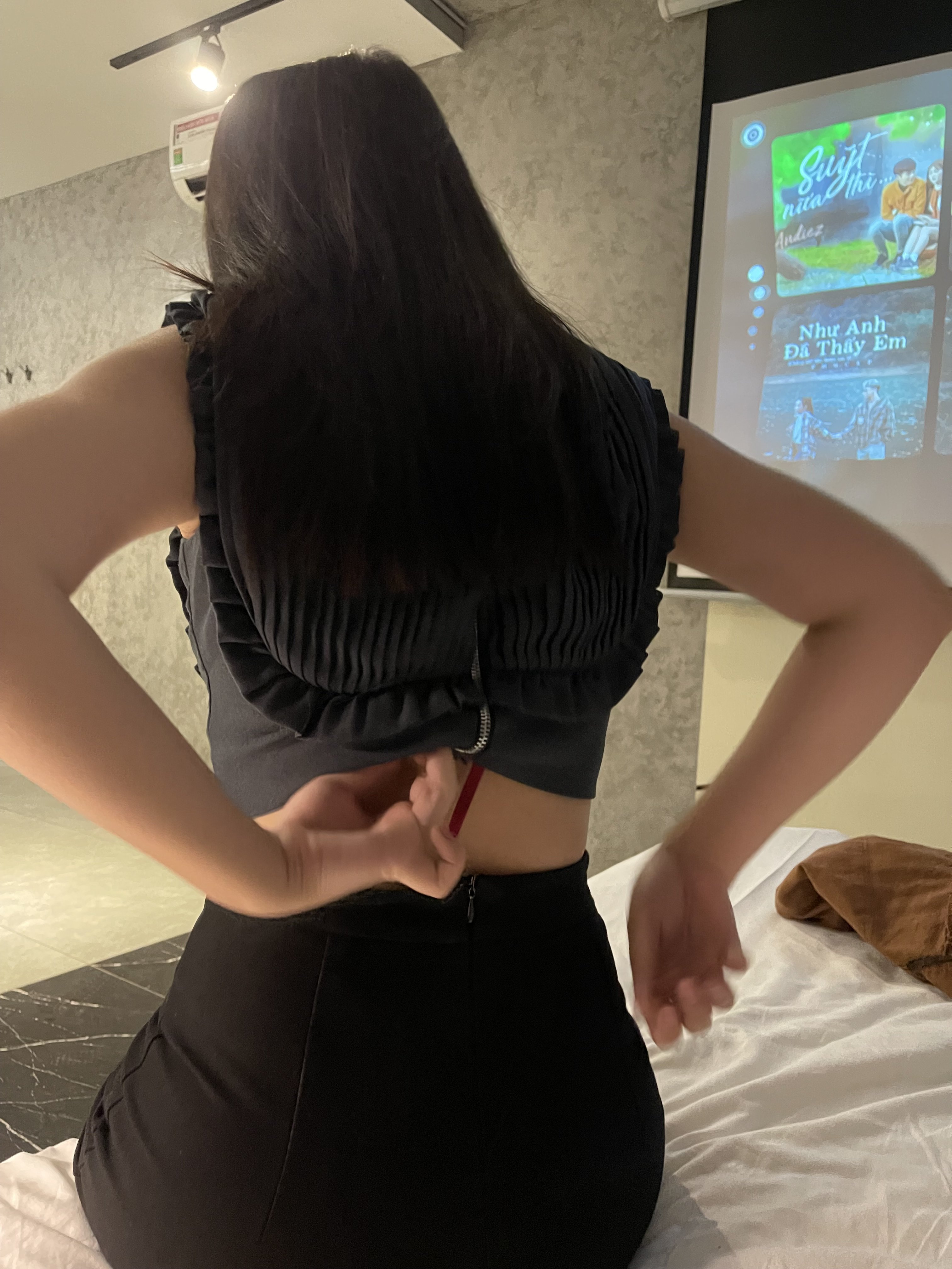 Đang đợi em ý tắm xong là vào việc .