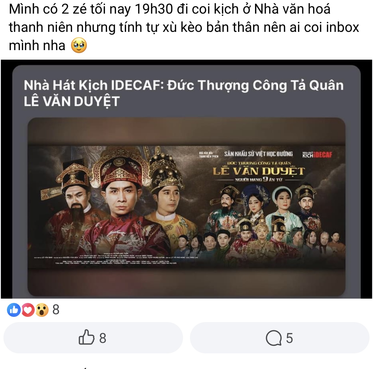 Pass lại 2 vé xem kịch 400k vì cãi nhau với ngiu. Ai lụm hộ với