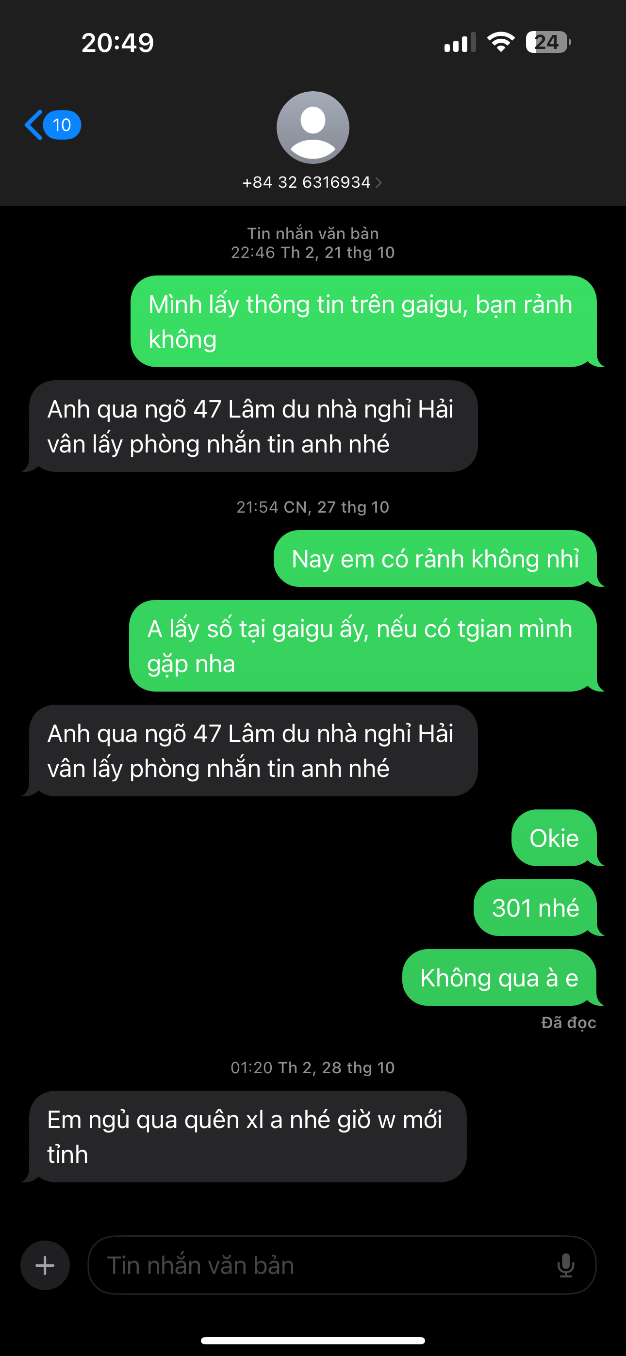 Sau lần gặp đầu tiên thì hẹn thêm 3-4 lần đéo được, dù lên bài 30p trước nhưng vẫn đéo đi đéo hiểu vì sao? Với giá 400k thì đáng thử vì phòng riêng sạch sẽ + khoản massage thì không khoái lắm.
