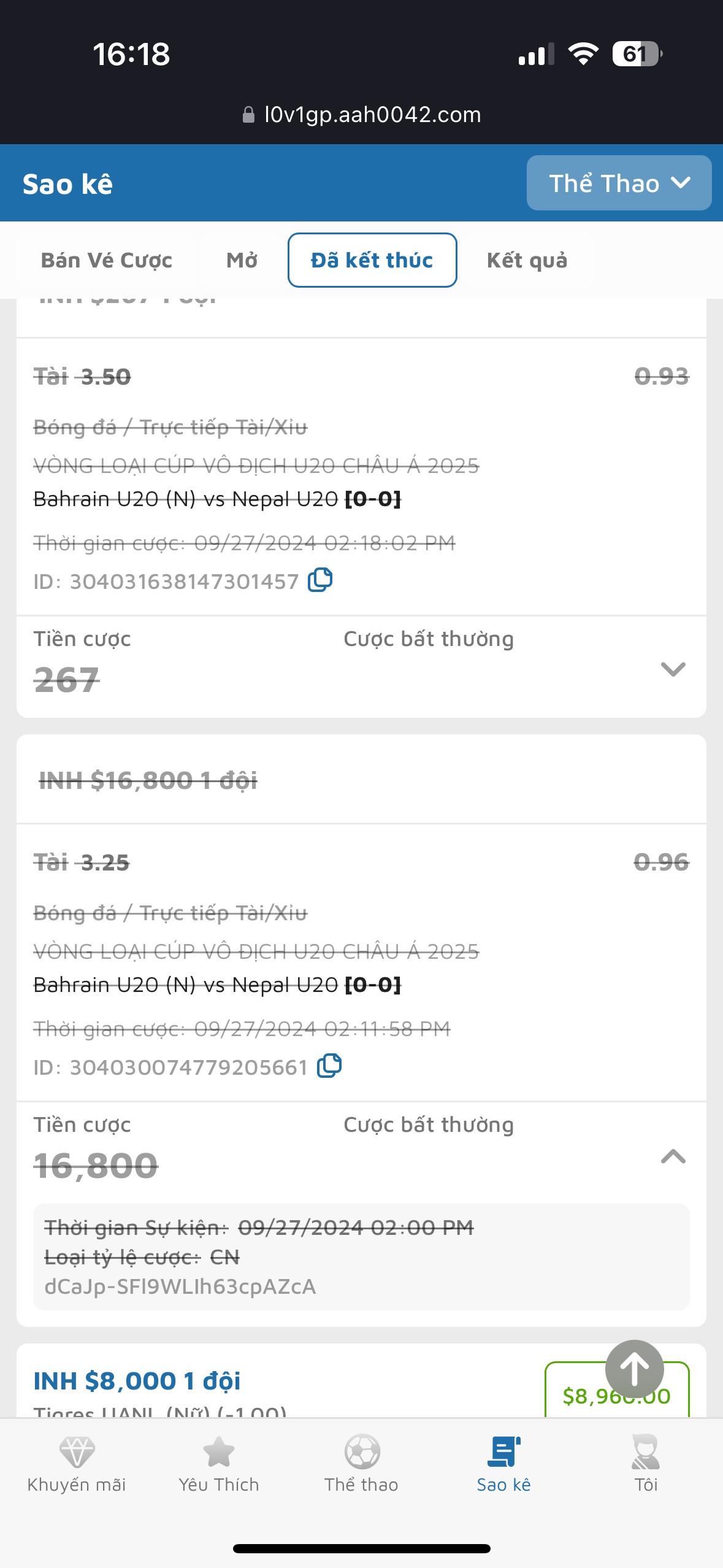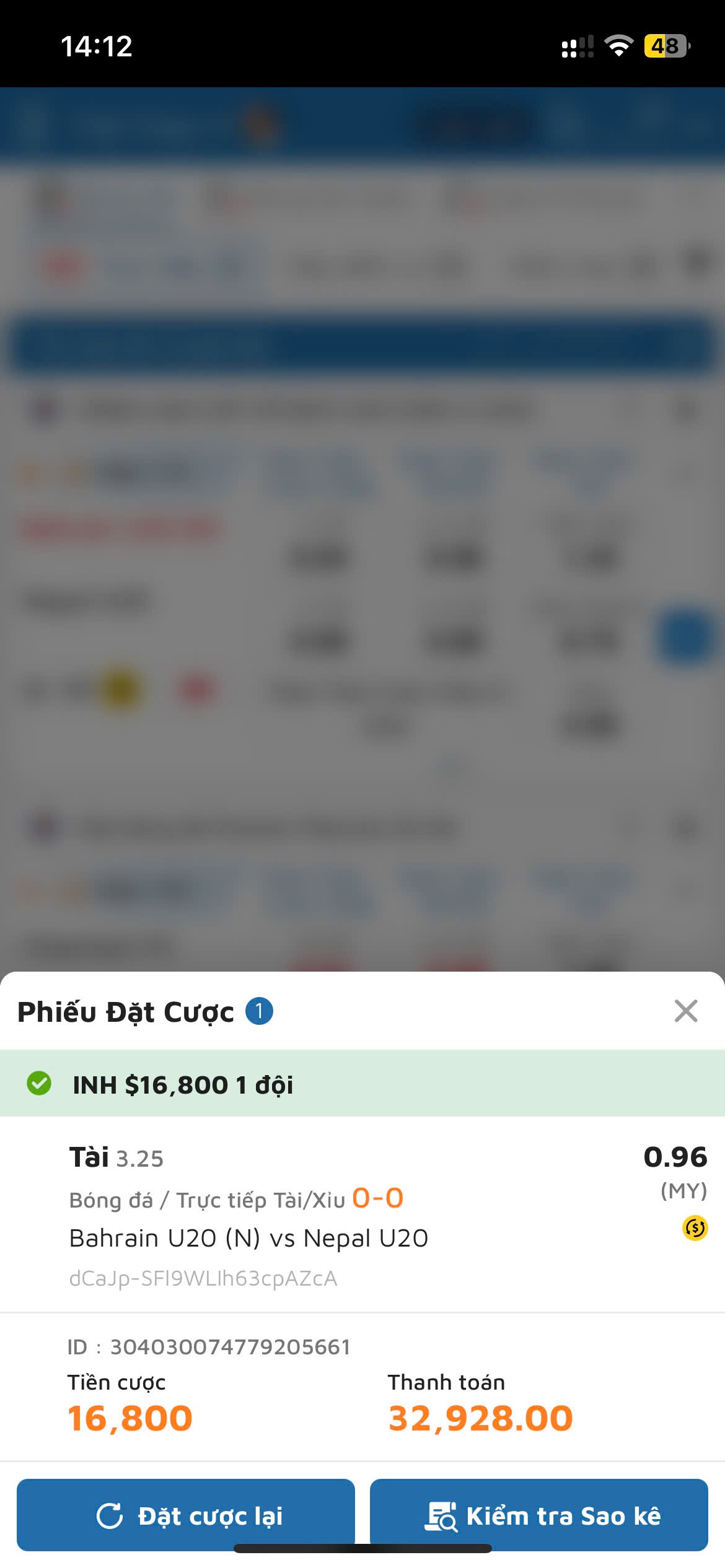 T nghĩ trận đấu đó bị hệ thống soi nghi ngờ ,kia mà nó huỷ khi có kết quả là bịp quáSao bị cược bất thường nhỉ. Mày đánh lúc nào thế. Hay kèo nó ra nhầm hay tỉ số nổ rồi mà mày vẫn bet dc lúc 0-0