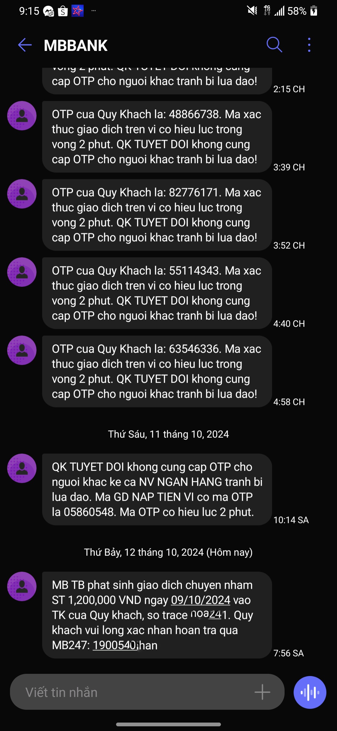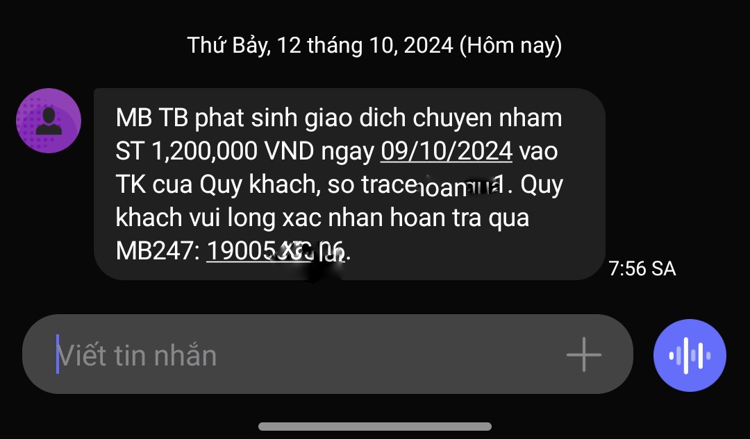 Số của mb mày ơiSdt nào nhắn tin cho mày? Số của mb à? Chả có ngân hàng lồn nào đi đòi hộ 1tr2 chuyển nhầm nên việc lồn gì phải trả, lần sau mày vẫn nạp vào thì nó trừ thôi. Bỏ tài khoản với ngân hàng ý đi, ko thì bỏ mẹ luôn con game ý