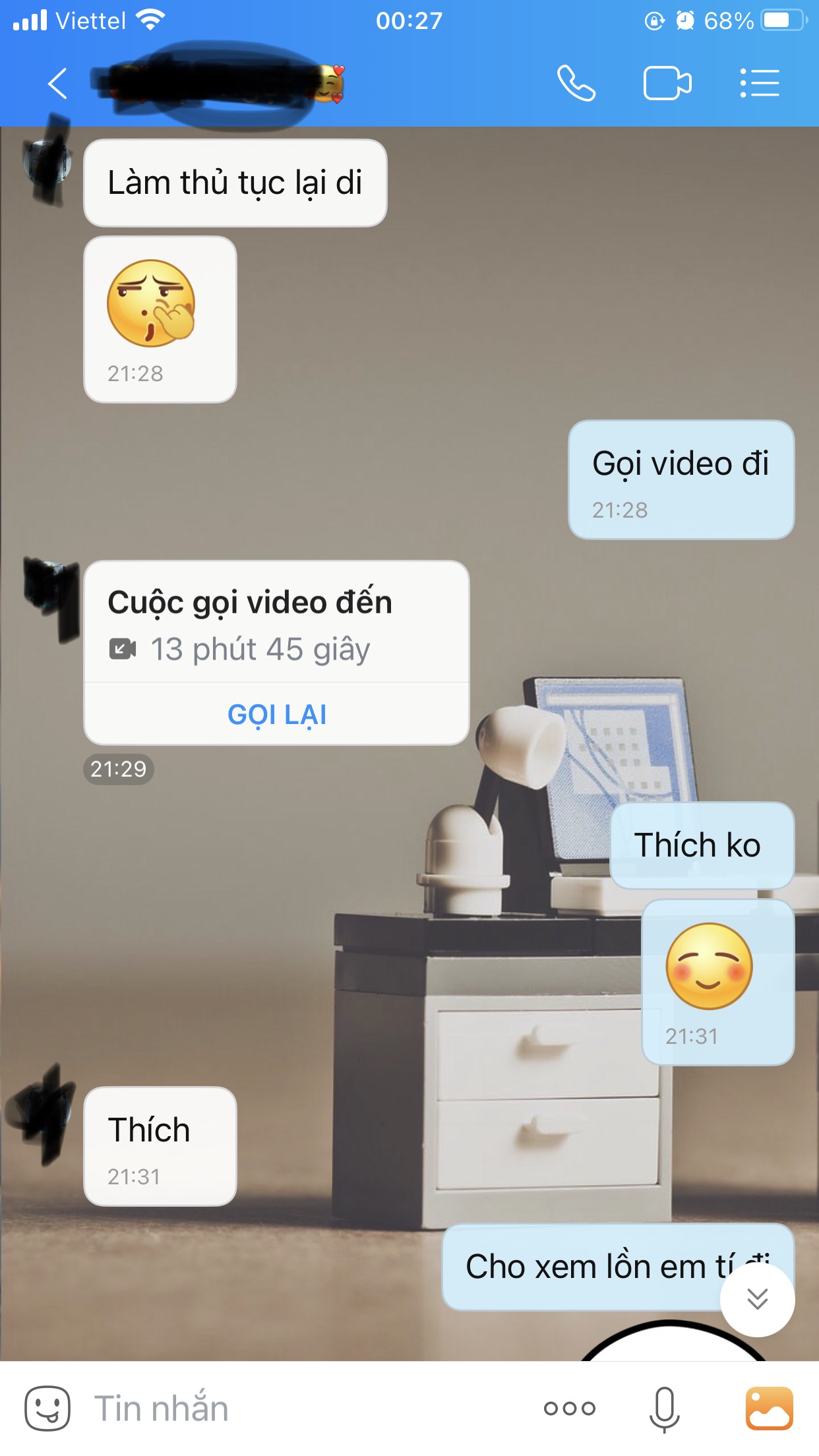 Hồi đầu 2021 con bồ tao phụ ông anh nó hỗ trợ online cho mấy lớp tiếng Anh buổi tối, công việc cũng đơn giản, chỉ việc cho các cháu vào phòng chờ của zoom rồi đẩy vào các phòng học, thỉnh thoảng vào kiểm tra này nọ, nói chung việc đơn giản nhưng lúc nào cũng phải bật cam. Tao là dân dev nên những việc đó quá dễ, nhưng con bồ thì đéo biết làm gì, nên hồi đầu tao phải sang nhà trọ của nó huấn luyện mấy buổi, nó cũng bảo là mấy buổi đầu tao sẽ làm rồi khi nào nó thạo nó sẽ tự làm.