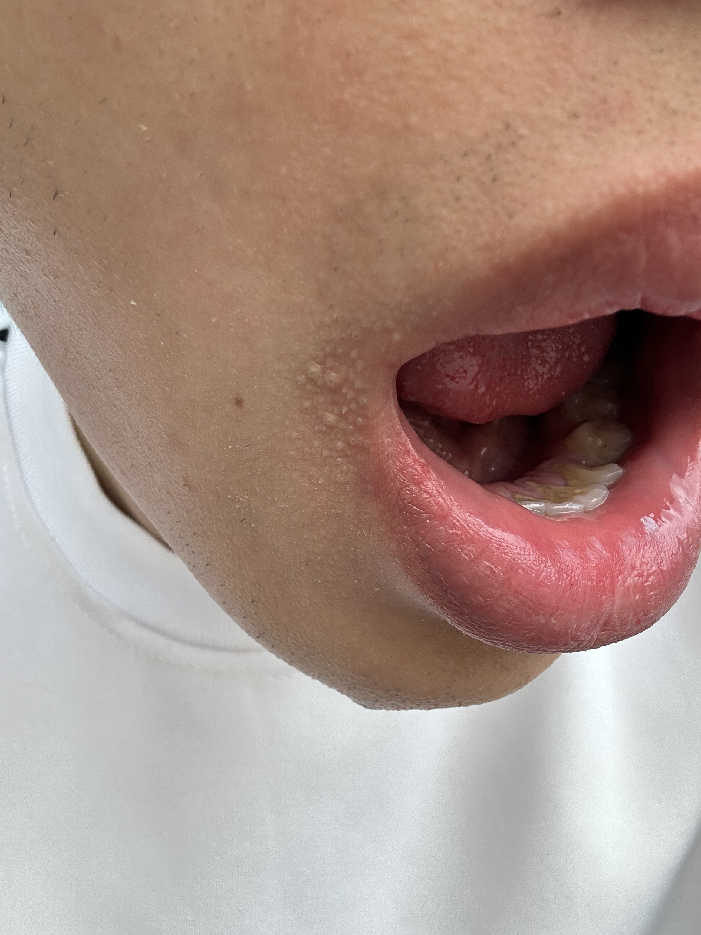 Không phải smg hay bệnh gì đâu, là hạt bã nhờn thôi.Mép t bị mấy cái nốt như thế này, t bị cả 2 bên mép. Nó phải mở căng mồm ra mới thấy chứ bình thường thì trông vẫn bình thường. Như này có phải smg không cm