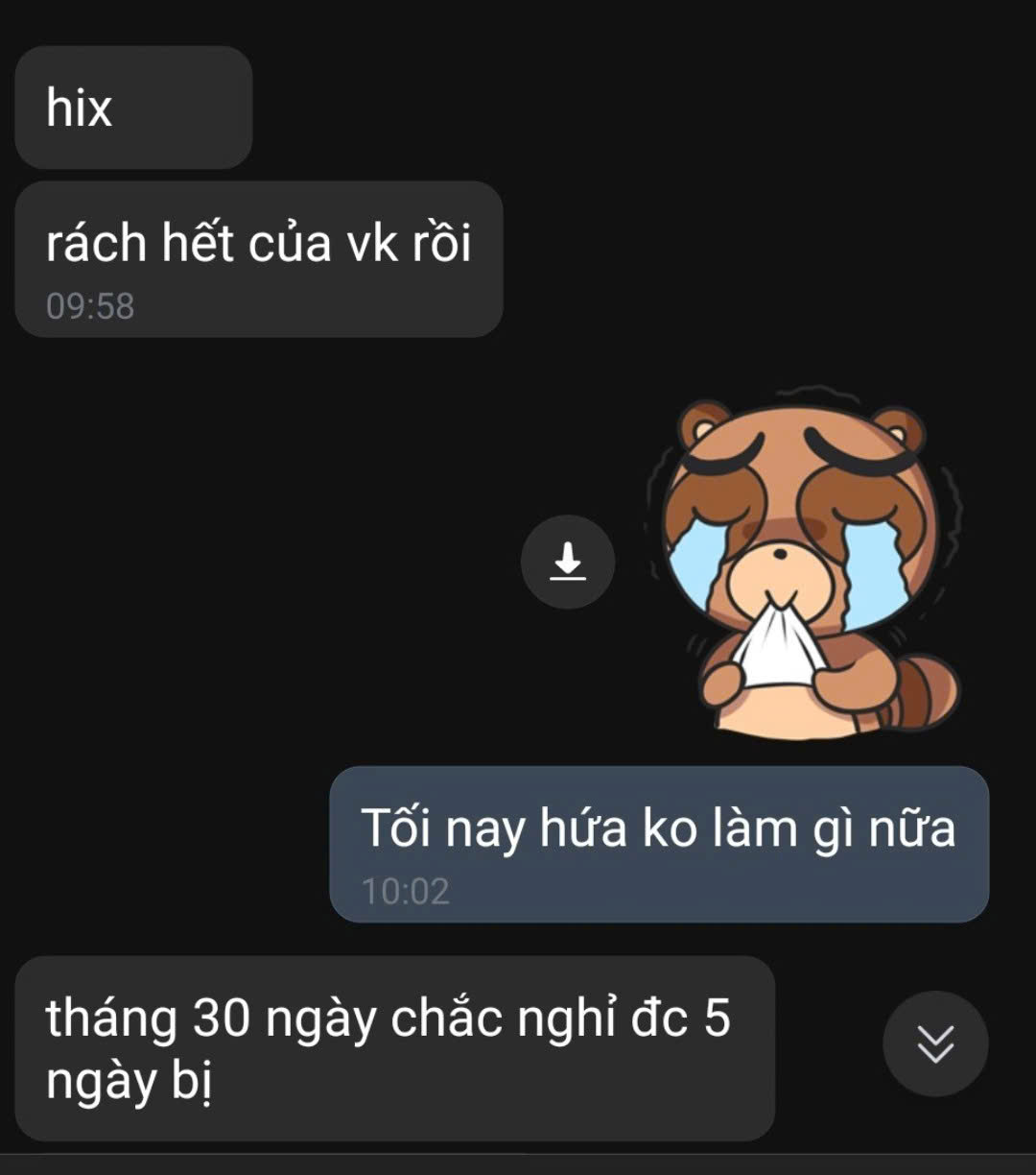 quan trọng là vk nó thế nào, nó không hứng thú + sức khỏe nữa, thì tính theo nămmày giống tao, sao mí thằng kia yếu sinh lý thế nhĩ? vk ck tao có tháng đụ ngày 1 trừ ngày có kinh ra mần đều, có ngày mần 2 cái.