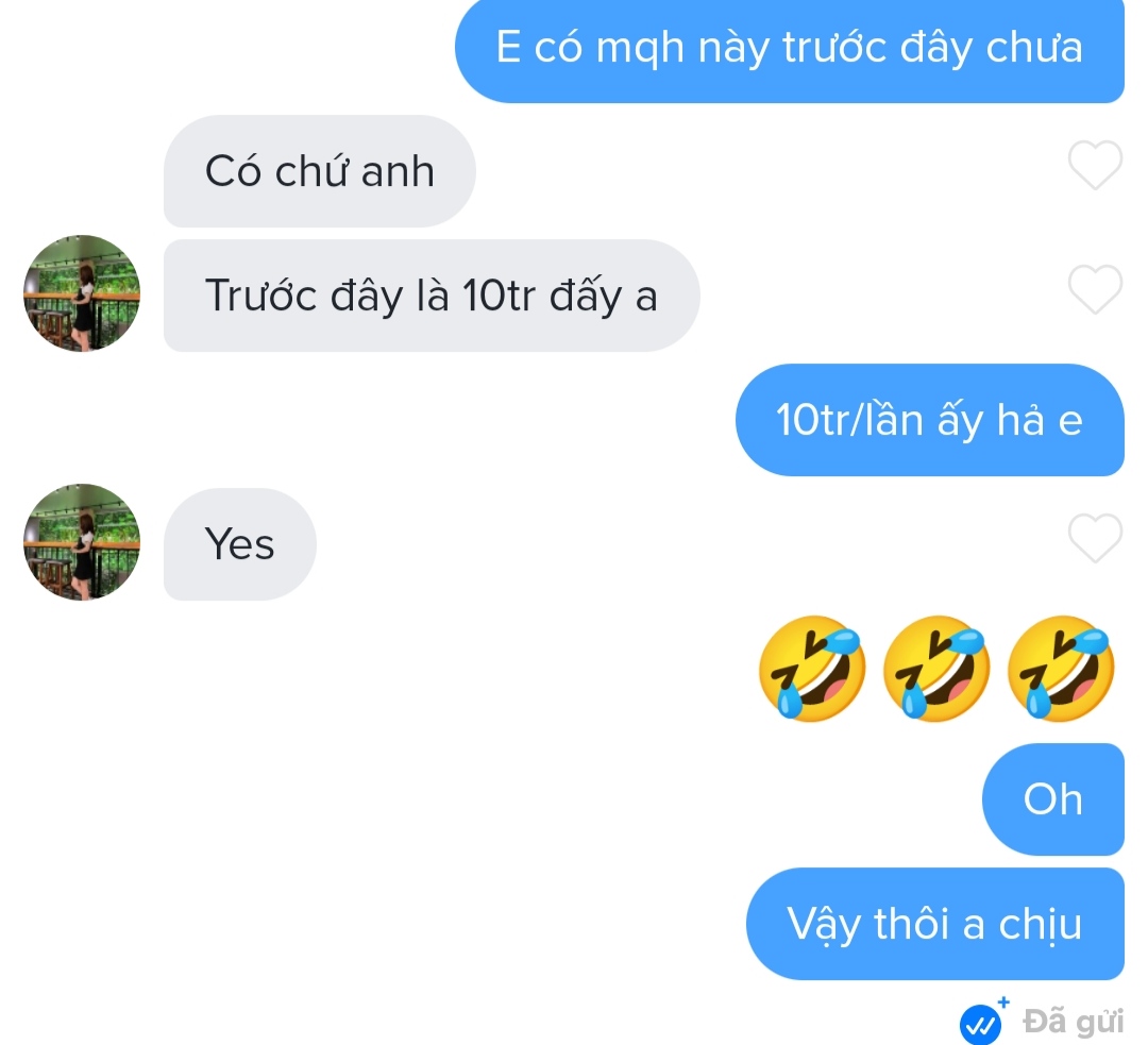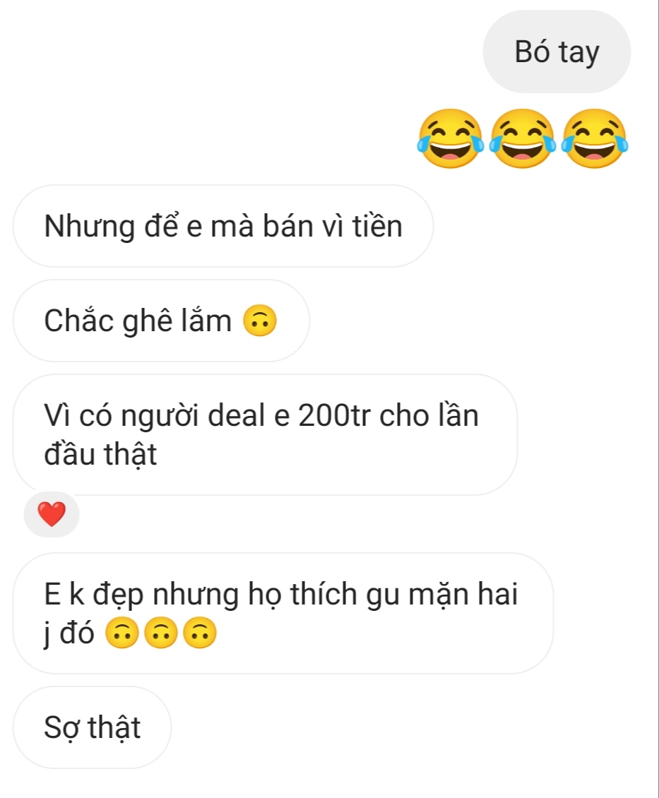 1 ngày nc dc 2 con bé, ko muốn body shaming nhưng t thấy hơi hài, 1 con 2k3 mặt mụn, xấu vl đòi bán trinh 200tr. 1 còn 2k mặt thì nọng, mũi tẹt, mập đòi 10tr/shot