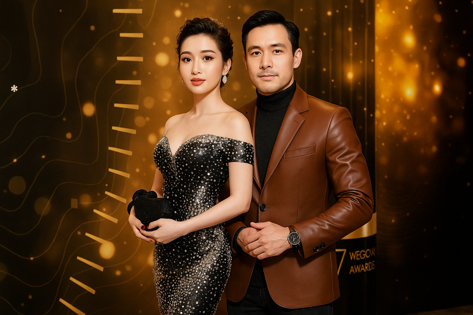 Mai trang điểm xong bước xuống, đón cô là Khánh cũng đang chỉn chu ngóng chờ, anh mặc một bộ vest form Mỹ với áo cổ lọ bên trong. Khánh thấy vợ mình bước từ cầu thang xuống mà há hốc mồm, lâu rồi vợ anh mới trang điểm cầu kì và ăn mặc lộng lẫy như vậy. Mai mặc một chiếc đàm dài xẻ cao quá nửa đùi khoe hết ra đôi chân dài hấp dẫn. Cổ váy khoét sâu để hai trái đào tiên thấp thoáng căng tròn, tóc cô búi cao, khoe chiếc cổ kiêu sa và một bờ vai thanh mảnh.