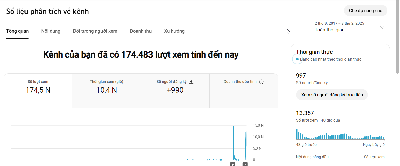 thả nhẹ cái traffic của kênh cho bác có động lực làm , cố lên nha bác , kênh chưa bkt vì chưa đủ view
