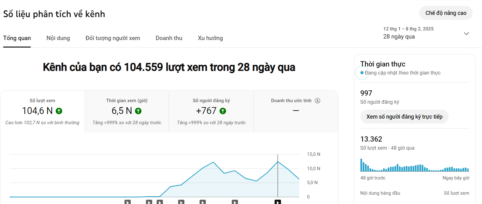 sắp 1k sub, nếu may mắn mai sẽ hoàn thành bkt rồi có thể bật quảng cáo cho tất cả các video trên kênh luôn. dưới là 2 dữ liệu kênh toàn bộ và 28 ngày
