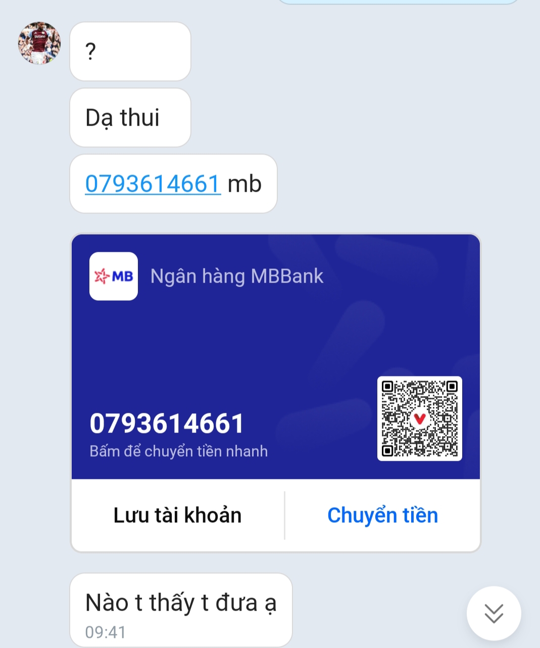 Stk 0793614661 mb tên Hồ Thanh Tâm.