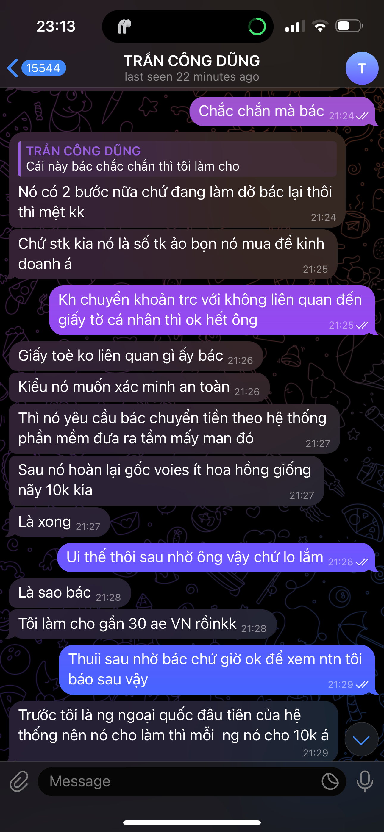 Má nó làm i như thật chỉ 1 bước nữa là tôi bị nó bịp, nó bảo tôi chuyển 1 ít tiền trc xong tôi chuyển cho nó cũng k đáng là bao xong nó chuyển lại tôi xong nó lại bảo là check cảnh sáttôi k biết nhưng mà bác cứ thấy mấy quả tương tự như thế, với mấy quả nhắn fb sét kèo mà kiểu tiền bạc thì cho cút đi, không thì bác chửi chết cmn đi, tỉnh táo lên k là mất tiền lại phải quay tay đấy