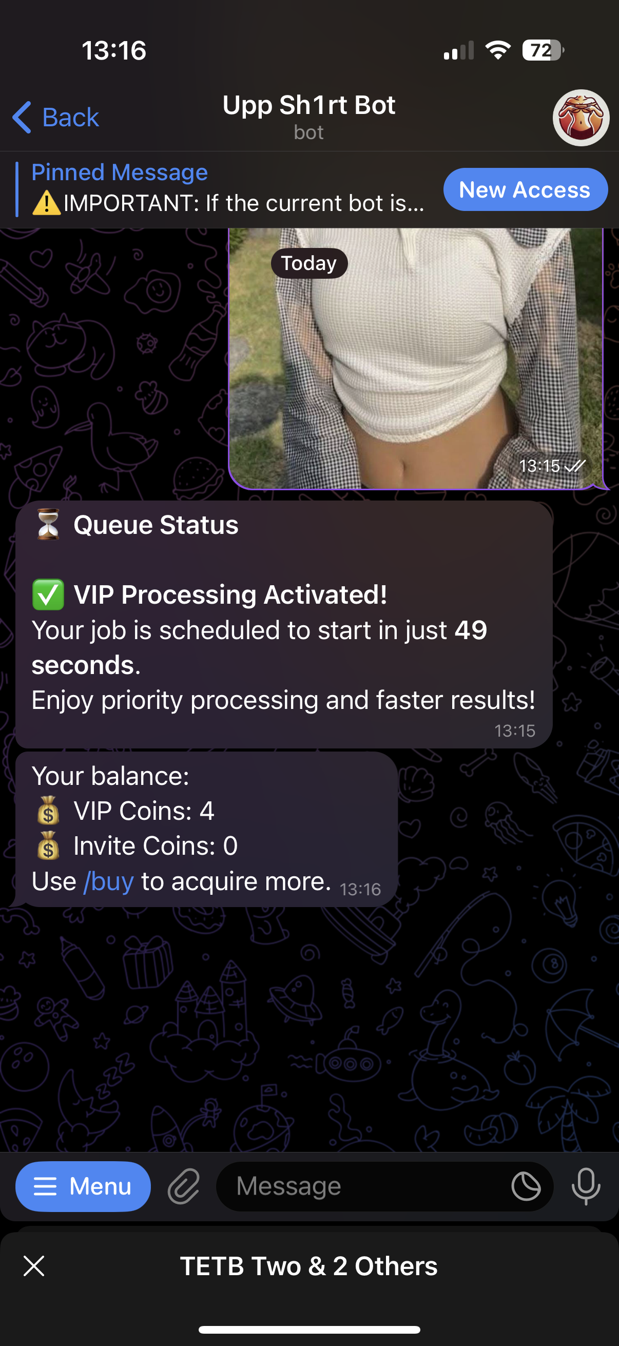 Chọn con ảnh đẹp nhất của tụi mày rồi hẵng đăng lên ko phí của. Chỉ free 1 lần thôi. Tao gợi ý ko bấm lung tung phí cơ hội nè : tiếp viên hàng không bamboo, nhân viên ngân hàng tp bank, giáo viên, nữ sinh bùi thị xuân, đồng nghiệp, bạn học.... nghĩ kĩ rồi hẵng test nháaaa.
