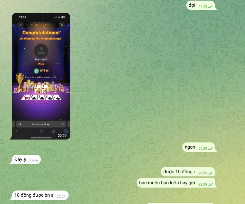 Nghe tên là biết m đang cày mtt 🤣🤣 nhưng mà ra tiền được nhé ae, ngày nó cho 20 lần chơi free, ông nào chơi kém thì ngày được 15 20mtt tính tỉ giá hiện tại thì 1k6/đồng, ông nào khá hơn thì tầm 100 200 ( nếu đầu tư vào tour mua bằng mtt), còn ông nào pro thì đánh giải trả thưởng bằng bitcoin hoặc dodgecoin, nói chung tuỳ may mắn từng hôm và đặc biệt đừng máu đỏ đen all in thì ngày kiếm 2 cốc cafe là chuyện nhỏ