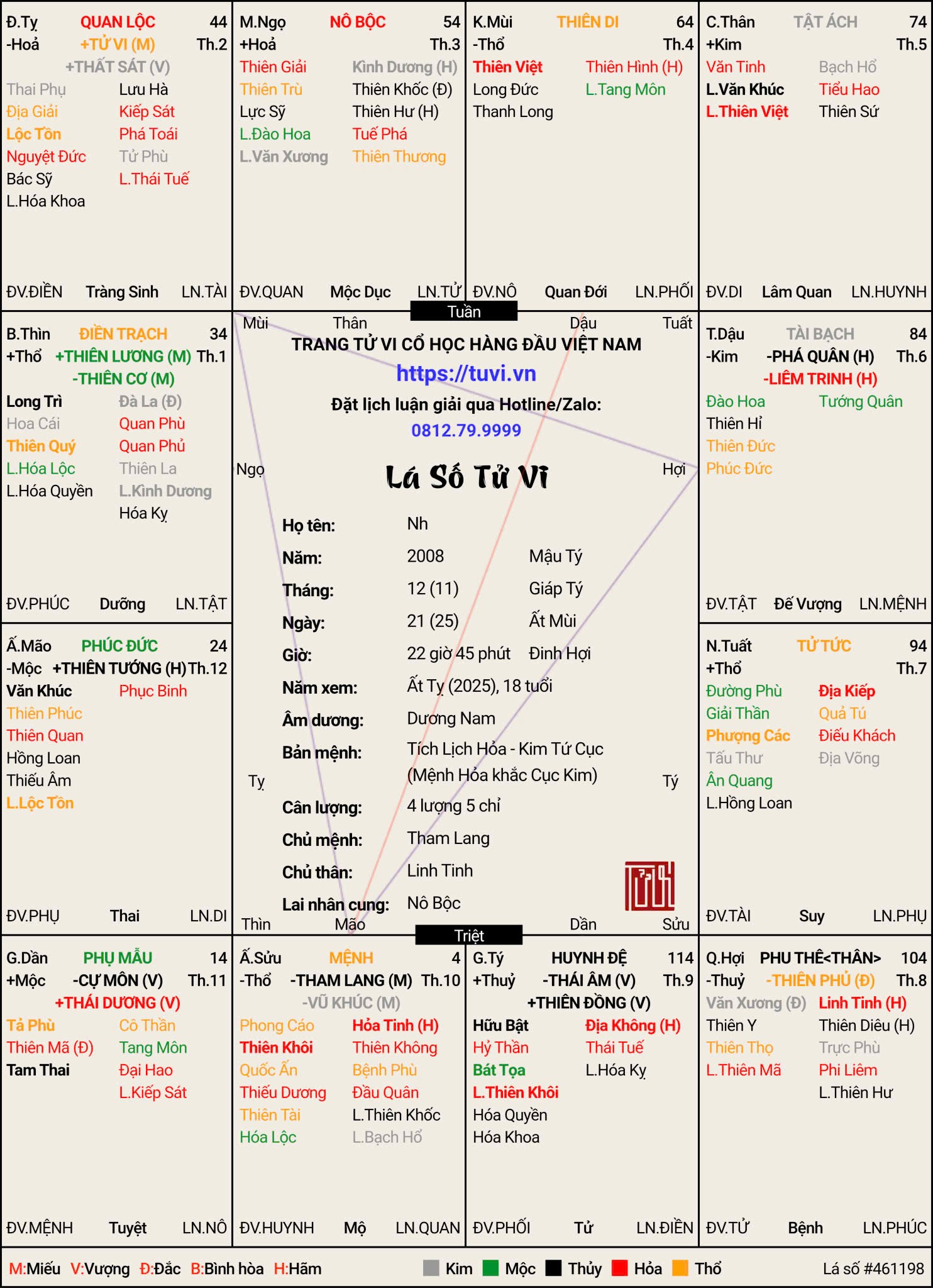 dạ chỉ sai ở chỗ là mắt kém thôi ạ, vì em tiếp xúc máy tính từ sớm, ngót phải 12 năm mắt tốt 10/10 ạt đag ktra xem đúng lá số ko. M phải trả lời t xem đúng hay sai. Sai thì sai ở đâu, đúng là đúng chỗ nào chứ t ko phải kiểu thầy bà mà m hay xem đâu