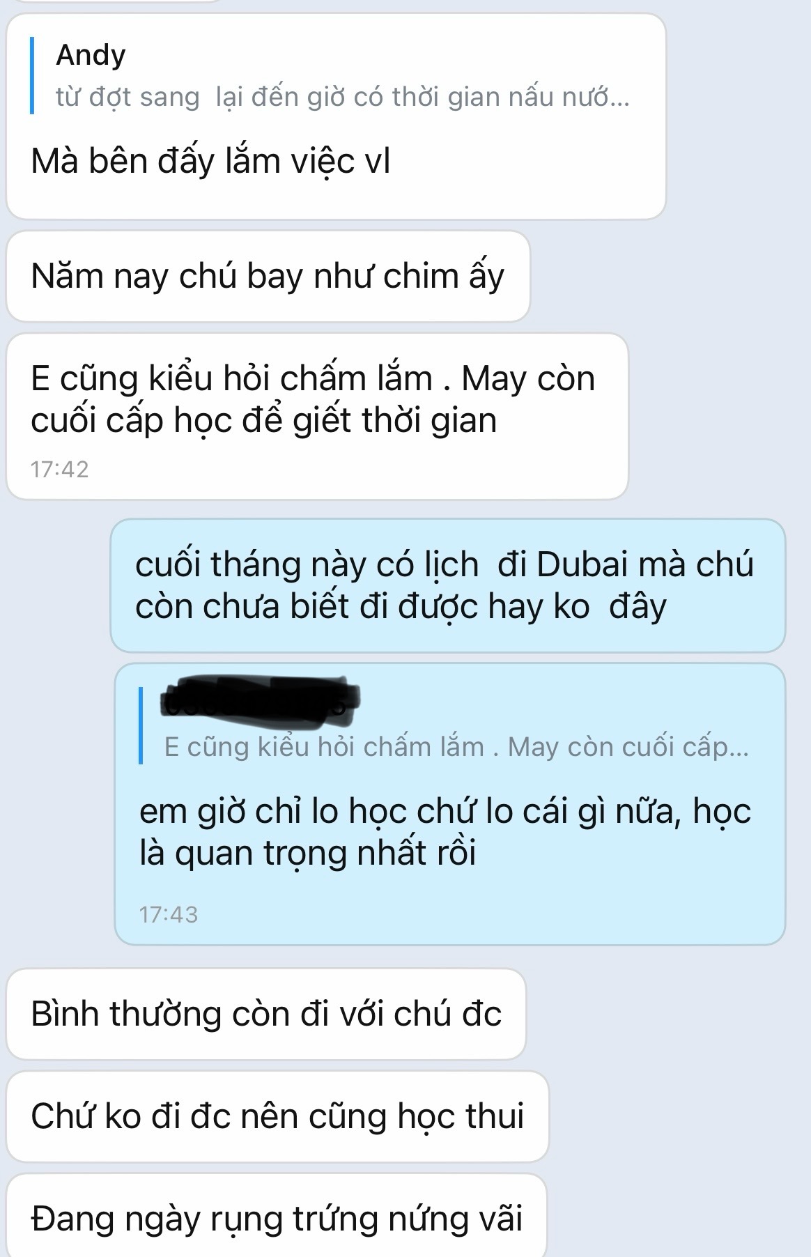 nó tầm giờ còn đang ôn thi đại học, tao đi công tác nhiều cũng là để cho nó chú tâm vào học chứ tao mà ở Hanoi là nó ngày đéo nào cũng đòi gặp, có khi chỉ là nằm ôm tao ngủ xong mút mát tao một tí rồi lại đi học ca tiếp :))