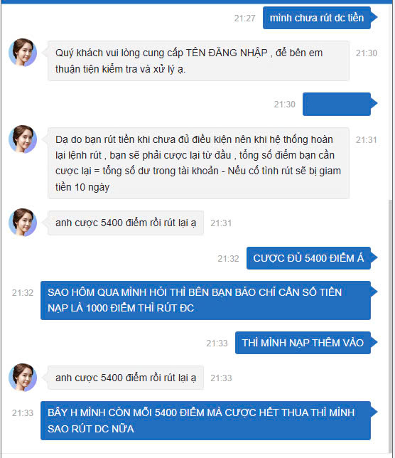Bọn nhà cái nào cũng nắm đường chuôi. Kubet có tiếng tăm xưa nay rồi, rút vài chục hay vài trăm triệu thì vẫn tín lắm, nhưng dm rút tiền tỷ đi rồi biết .