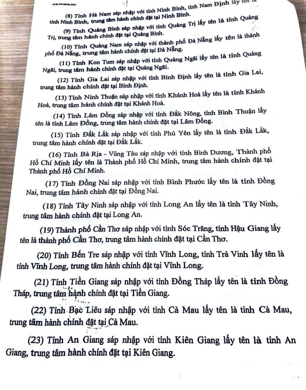Các tỉnh sáp nhập