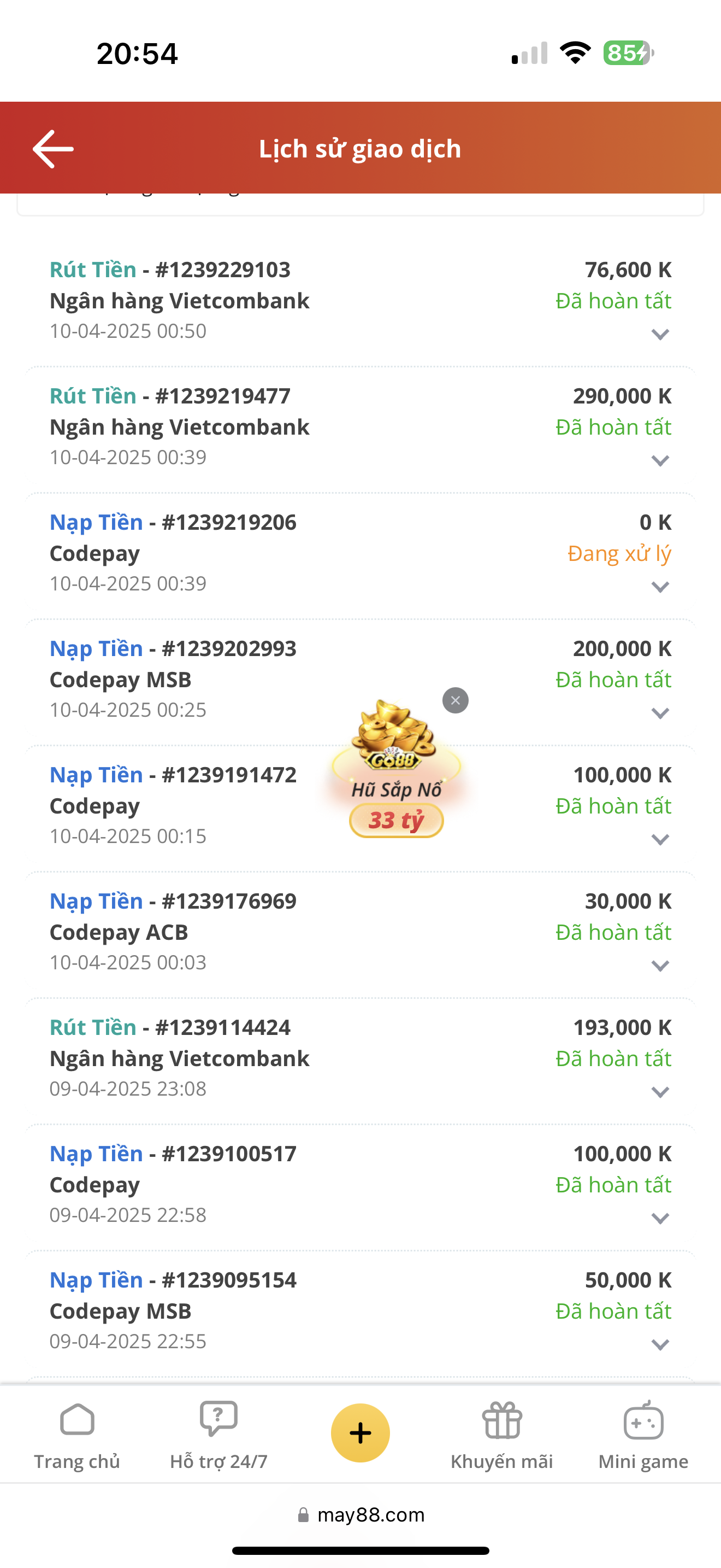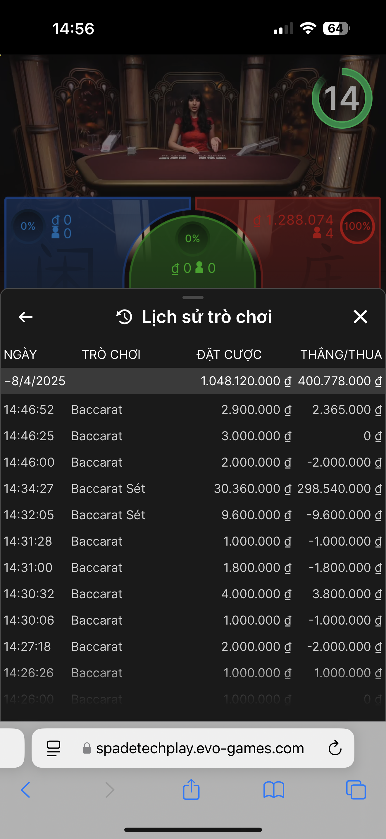 đã hay lại còn gặp may anh em à, tôi chơi có thói quen nhảy bàn liên tục ( kiểu để tránh bọn nó soi ) , hôm nay đang đánh vu vơ,mới ăn đc gần trăm thì nhảy vội vào bàn mới gõ 1 tay xong tự nhiên thấy nổ hơn 300tr , hoá ra là vào bàn baccarat Sét , đúng ván được nhân tiền , vui quá lại lên chia sẻ anh em tí cho đỡ phởn