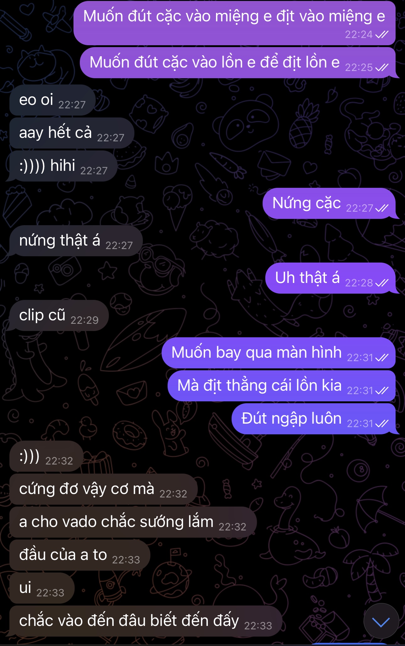 Địt chưaChat sex này nhiều đứa vào lúc đầu ngoan lành lắm nc lịch sự ko gì. Sau 1 thời gian là lộ hết bản chất thôi