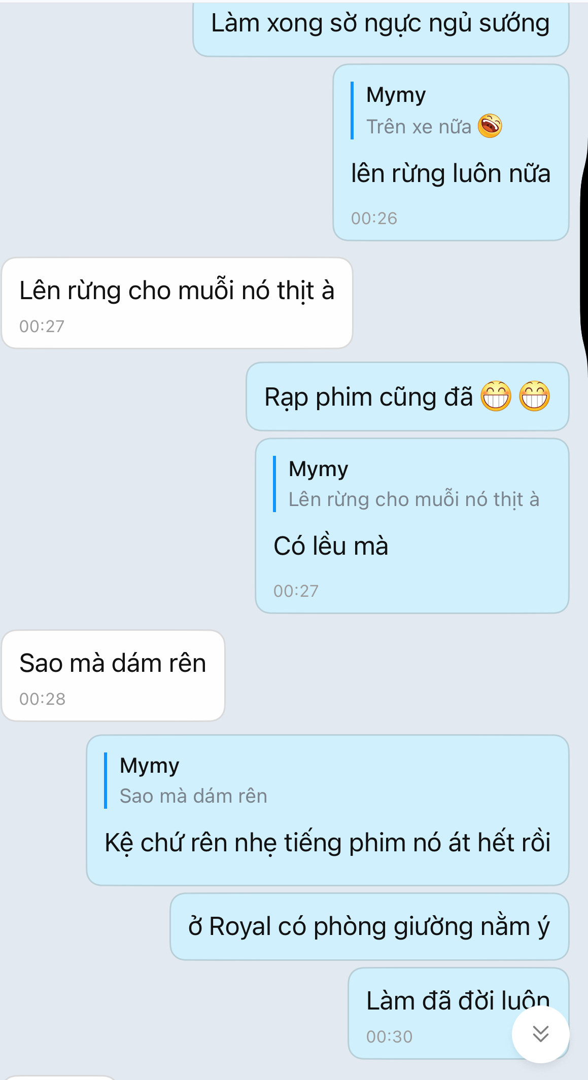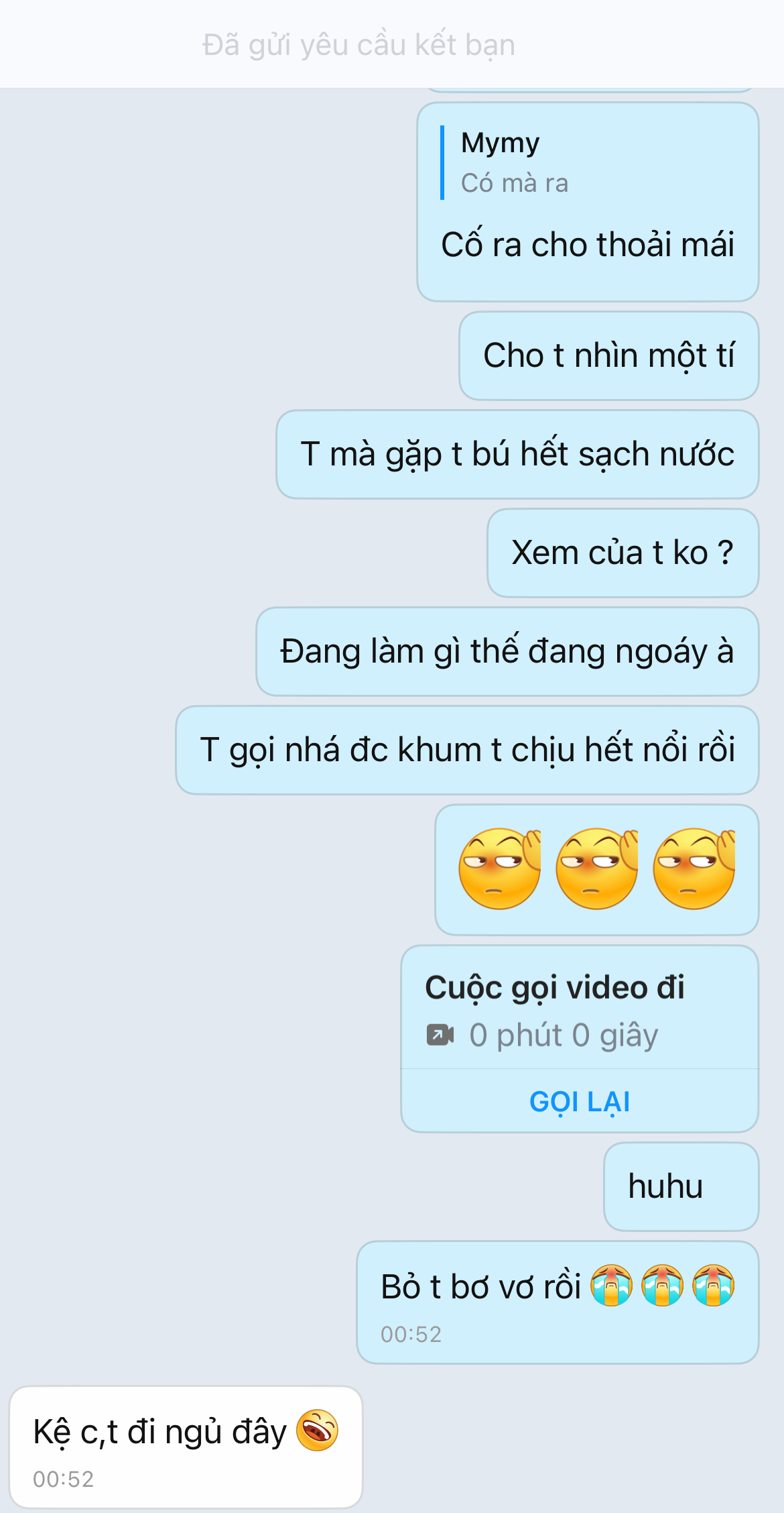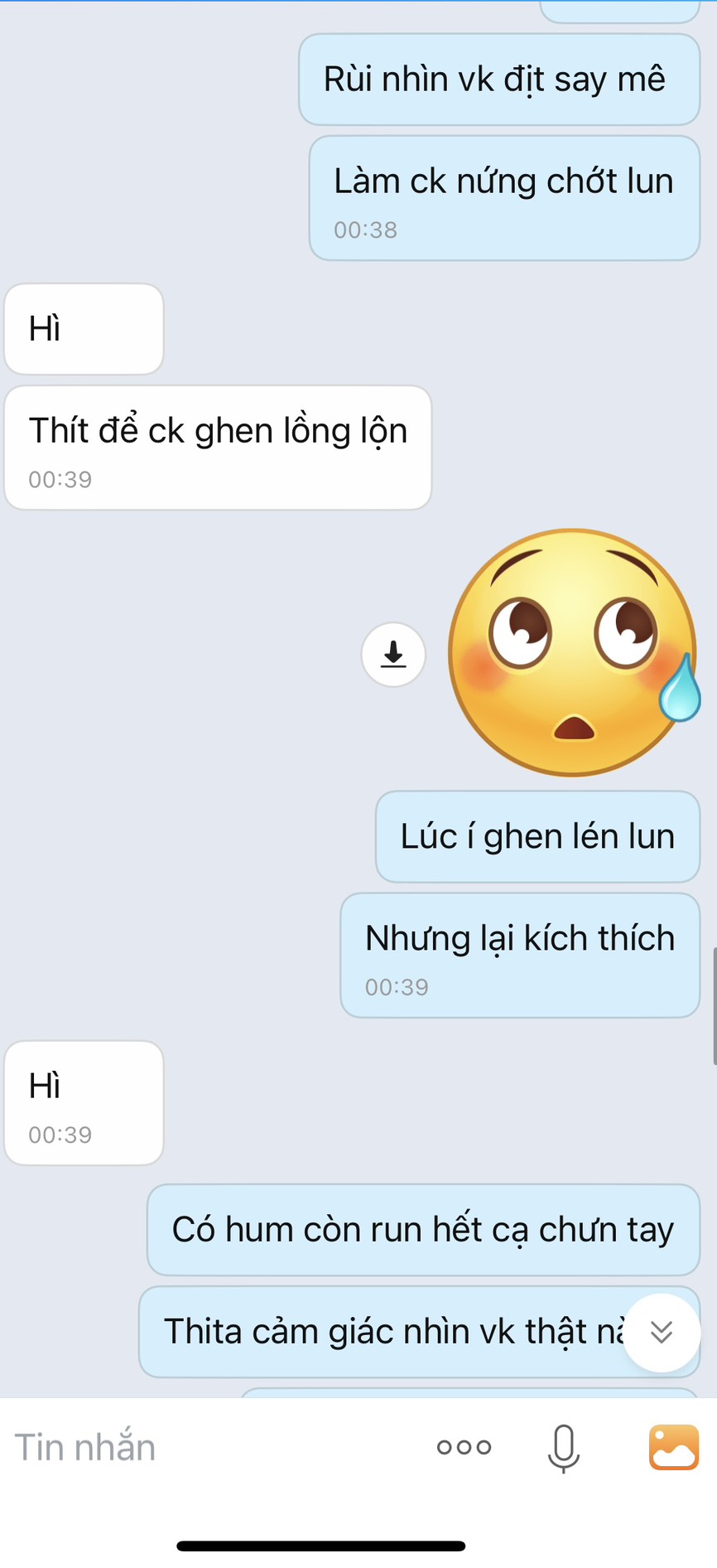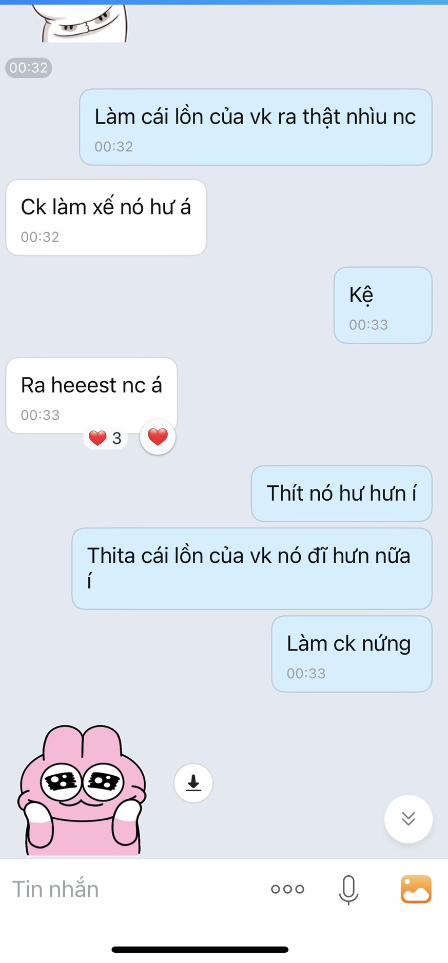 Dm. t lục tin nhắn cũ thằng này chuyên đòi hình đùi, đýt, zú với cứ hẹn gặp nhưng chưa có cơ hội . Hôm 30/4 nó đòi gửi hình đùi qua ( ko mặc quần ) nhưng lúc đấy khuya nên ko tiện gửi, hẹn qua hsau gửi thì bị mẹ nó bắt về nên ko kịp :)))))