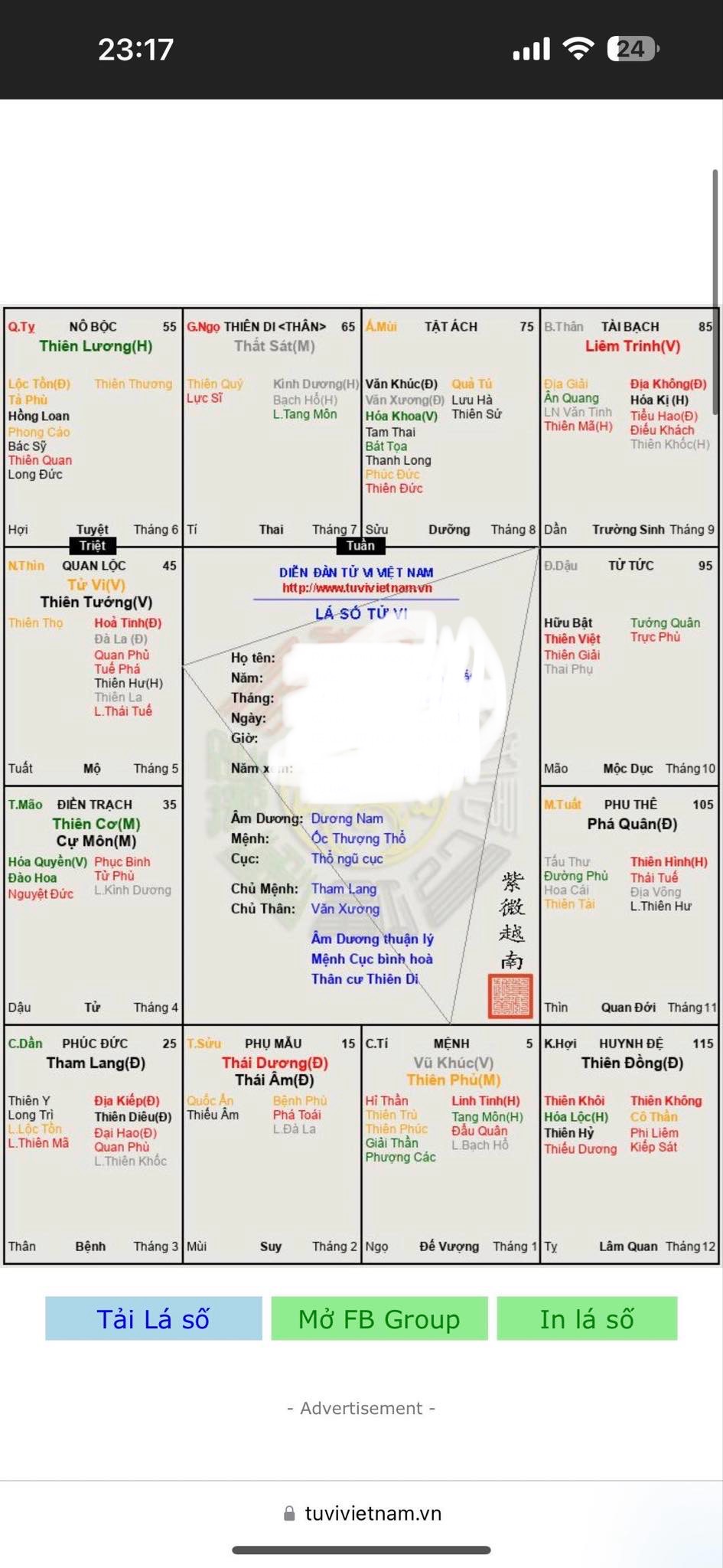 Có ảnh Tụi bây xem hộ ta lá số này với lận đận tình cảm quá