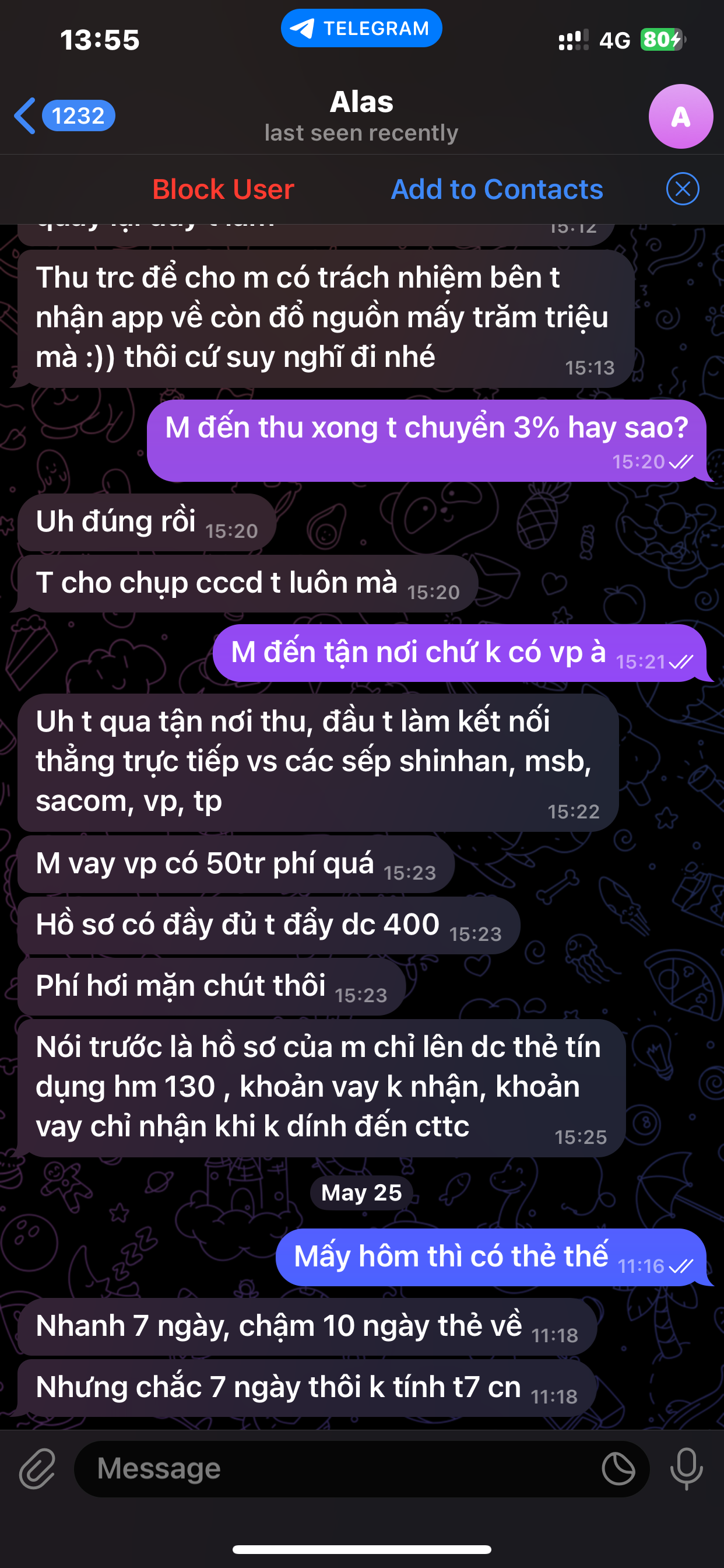 Lừa cc. Tìm chỗ uy tin mà làmChào mấy tml. Muốn vay ít vốn mà cic nát quá có tml này nhận mở thẻ td qua tận nơi làm hồ sơ nhưng bắt chuyển trước 3% phí liệu có phải lừa k nhỉ.