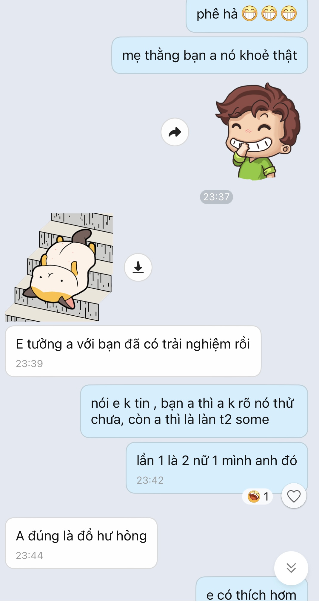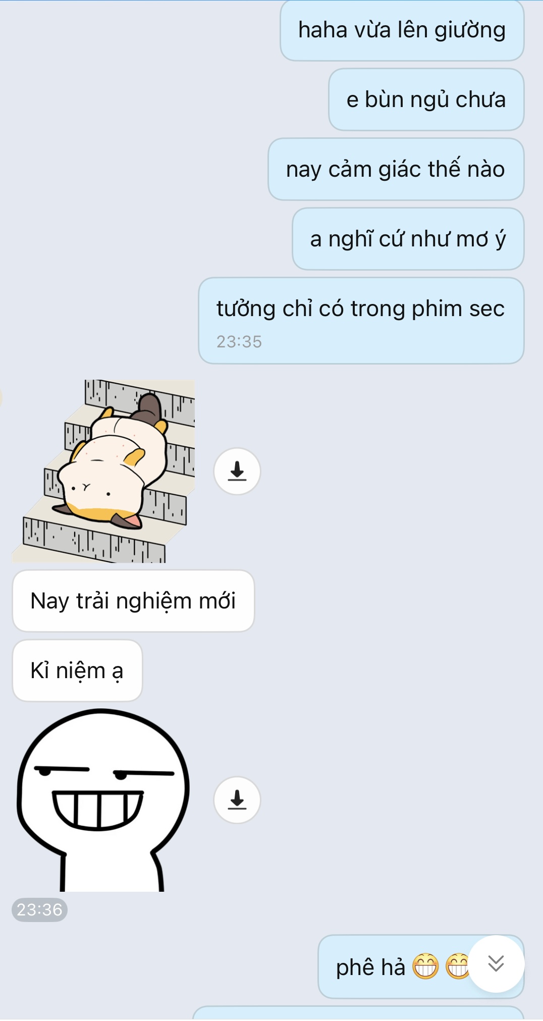 và chương trình đặc biệt tháng 9 chính là buổi some với e sgm 94 với bạn t, 6h tối tan làm hẹn nhau làm nồi lẩu với 2 bầu rượu ở quán , 8-10h tối vào ksan quần nhau 2 tiếng liên tục . 2 a e mệt mà e nó vẫn muốn tiếp. chắc sau phải làm kèo 3:1 kaka