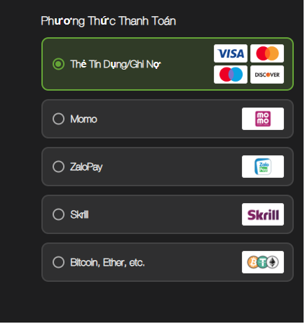 ko bạn, chỉ chấp nhận mấy phương án này thôi nhanạp đc bằng card k bác
