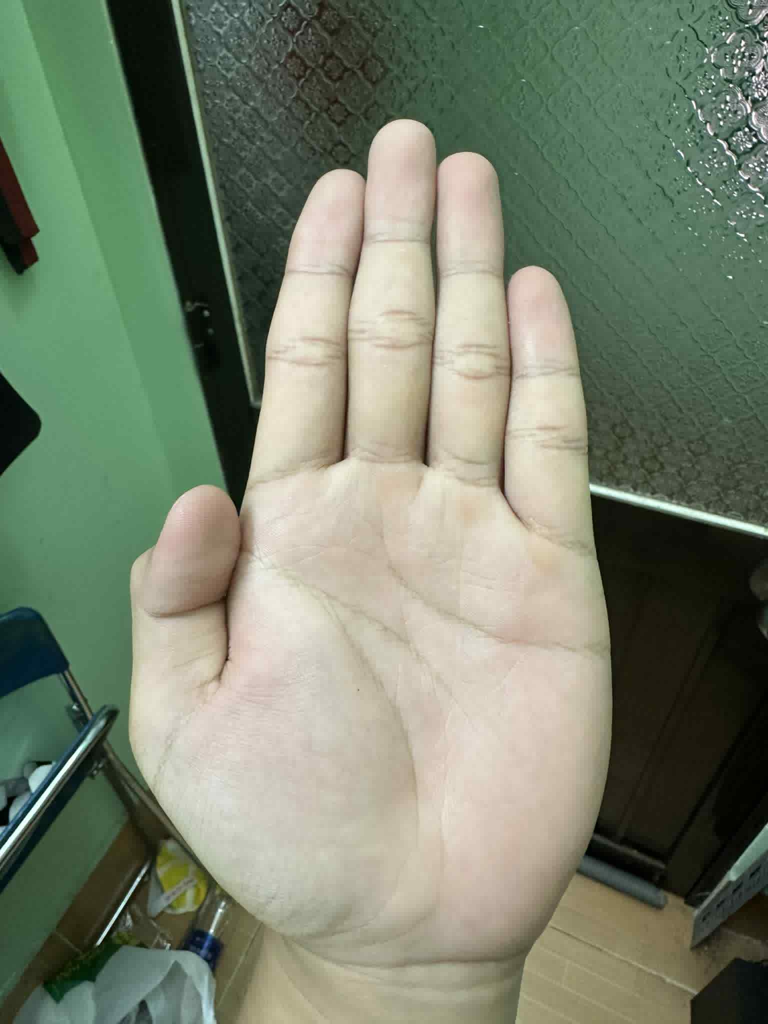 Móng tay quá thâm + vạch dọc. Da tay loang lổ (hồng trắng xạm lẫn lộn) tuần hoàn không tốt, xem chỗ cạnh bàn tay đè xuống gõ phím ấy. Nhấc lên mà mãi ko hết đỏ là tuần hoàn rất kém.