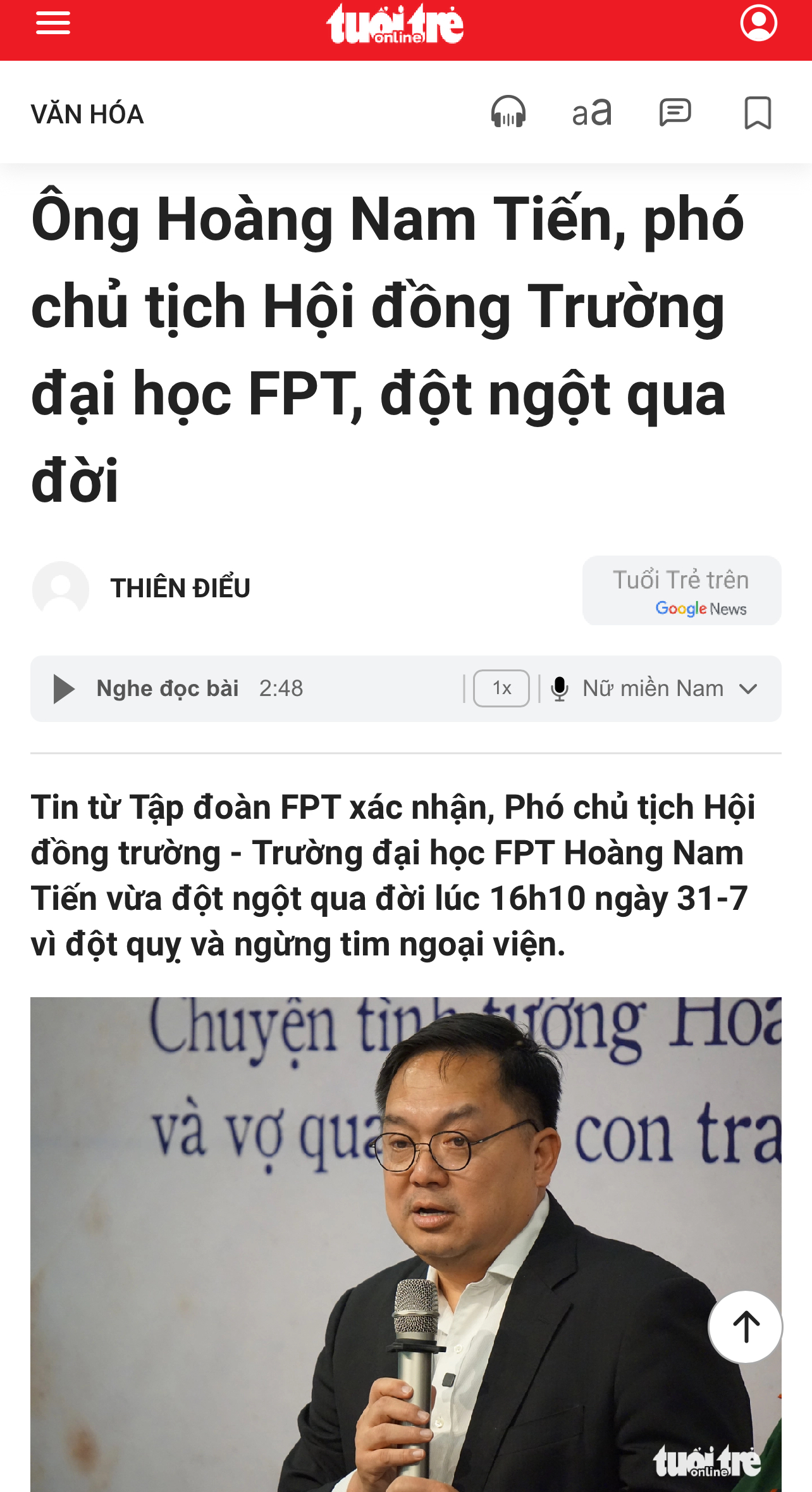 Có ảnh Ông Hoàng Nam Tiến ra đi vì đột quỵ