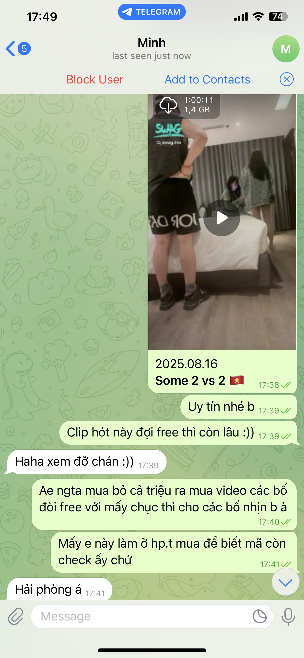 ib tele : quanquana9 đi ae . T bỏ hàng triệu bạc ra nên k có free đâu. Nên thằng lồn nào muổn free thì đừng ib. Chỉ bằng cốc cf thôi. Xem tốn tinh lắm nha