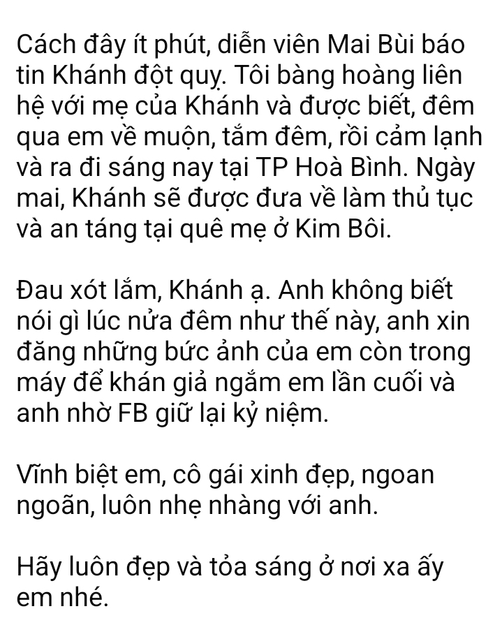 Sao lại quê mẹ nhỉT biết e nó mất qua bài đăng facebook. Mà vào đây đọc cáo phó thì thấy mất sáng sớm nên thấy hơi lấn cấn