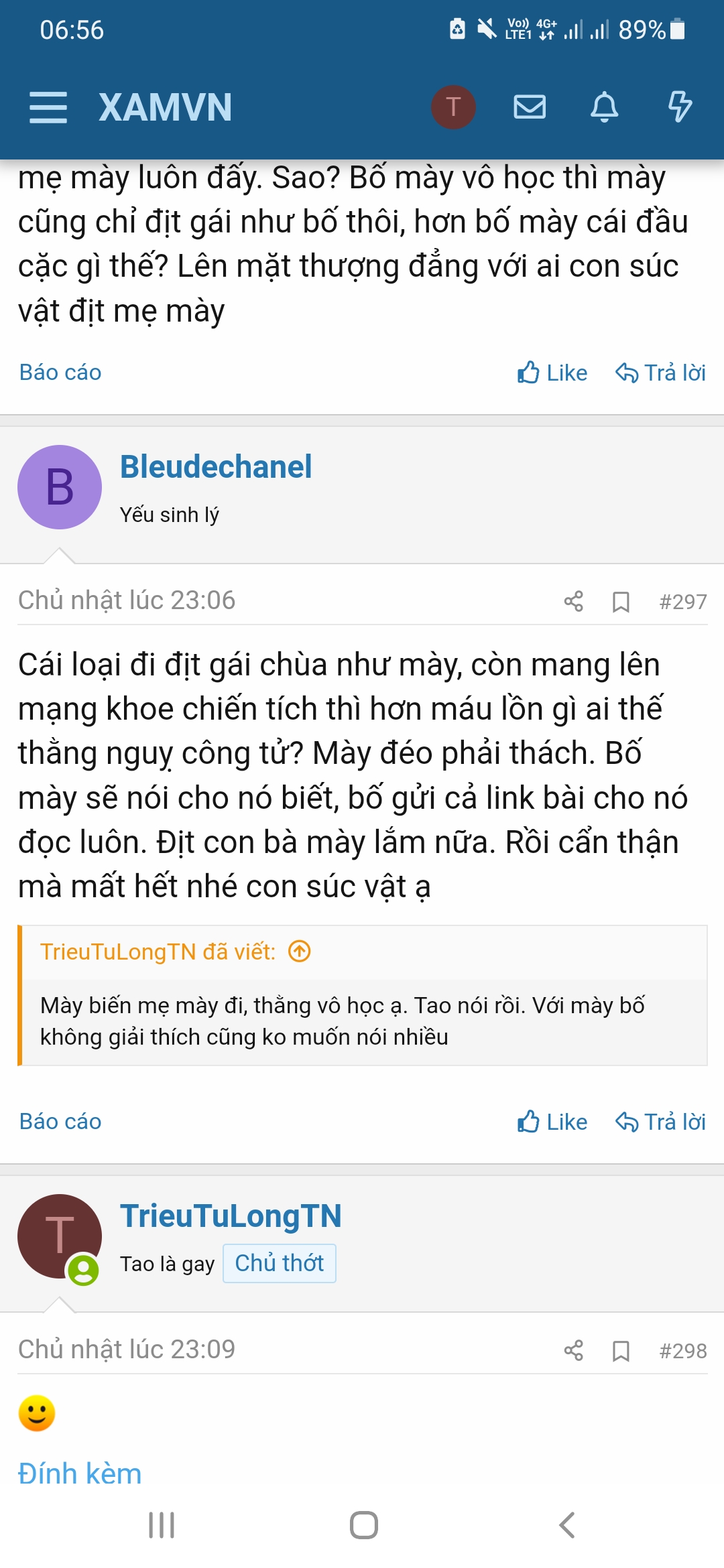 Bố mày hỏi bth chúng này địt nhau có cái lồn gì mà đâm? Thằng ăn cháo đá bát này