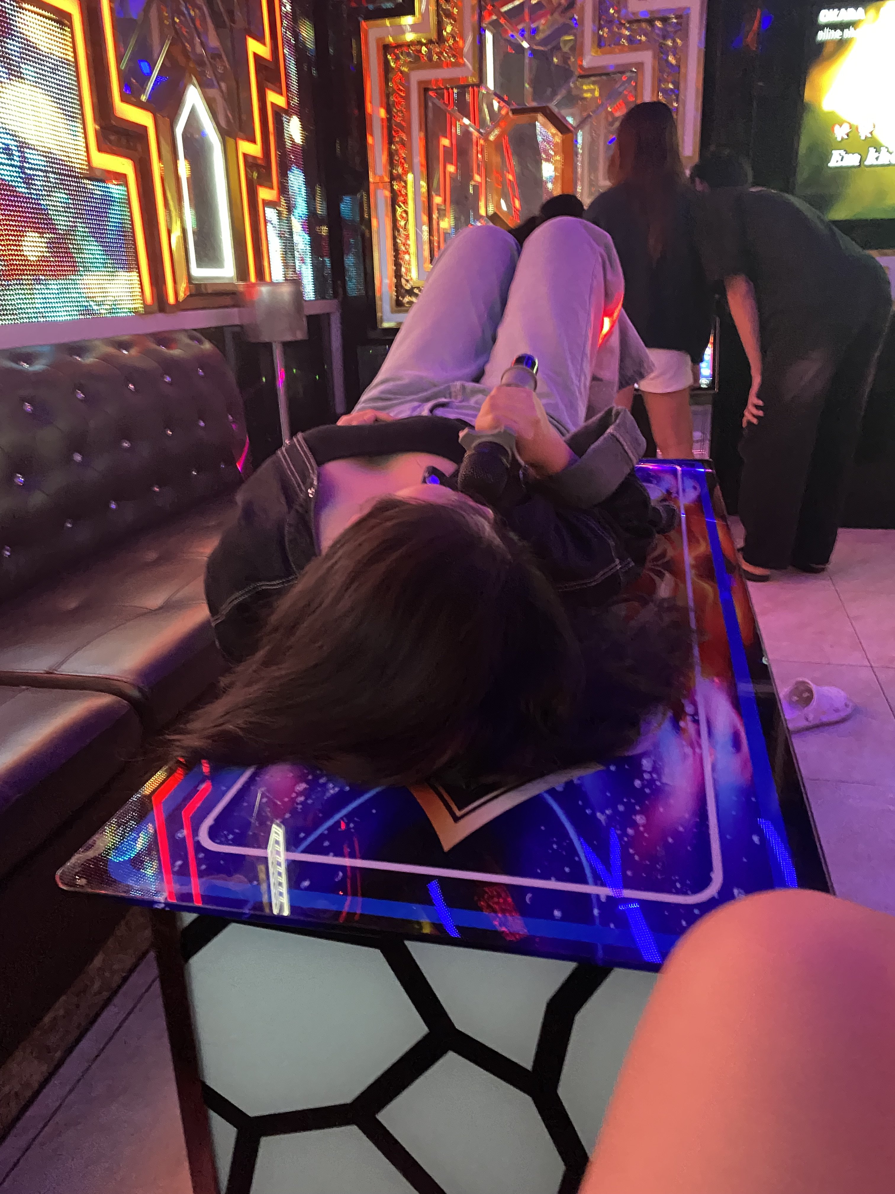 Chỉ thế này thôi àh, bài vở chán thế mày, có vẻ như mày đang đi hát với mấy cháu nó, mời thốc thêm bia rồi gạ địt thôi sao mà phải chụp lén hehe, nó nằm như này là ngấm mệt rồi đó, thời điểm vàng gạ địt nhanh còn kịp