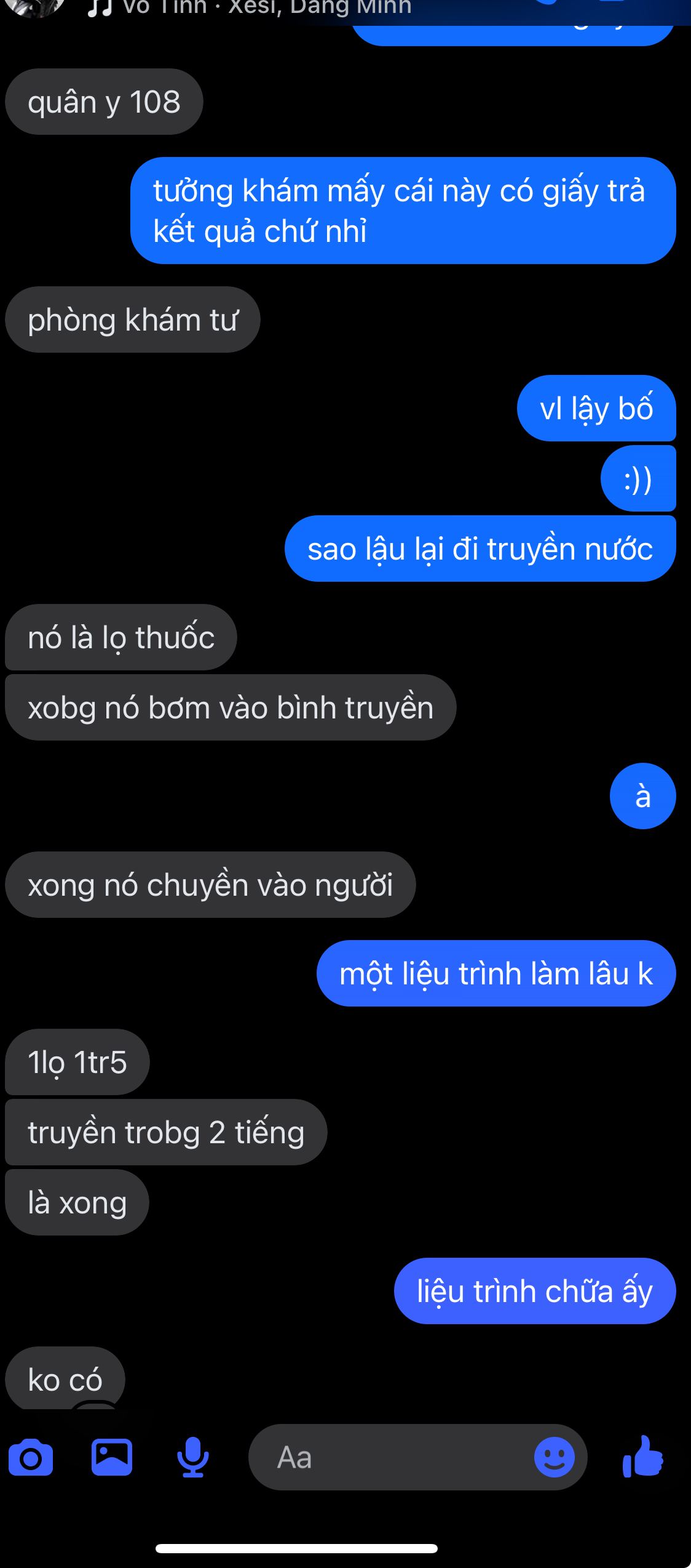 Truyền thuốc là văn kéo tiền của bọn phòng khám, toàn truyền kháng sinh vào người mày rồi vệ sinh đường tiết liệu cho m. Nó vặt mày ít nhất nửa tháng, mỗi ngày hơn 1tr rồi ngày cuối nó tiêm cho mày 2 mũi là khỏi.