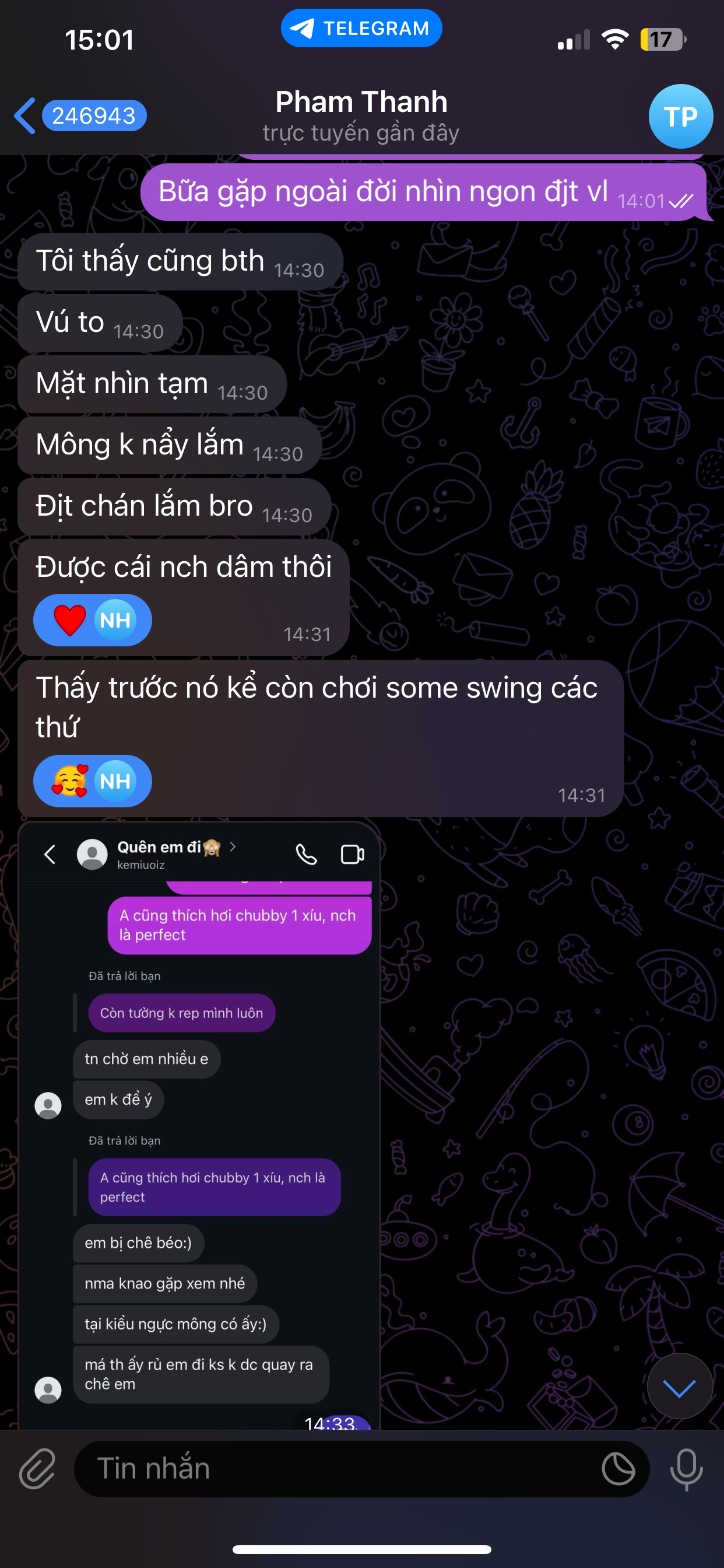 bảo ngu chúng nó tự ái đấy b :)) đọc bài viết nghe nó tả cho nó cái bát mì cay nghe đã ngứa cả dái r :)) thích đm nt vào việc cho nhanh làm l có chuyện kiểu xin bát mì với bát meo mùi như thế vẫn còn đâm đầu vào