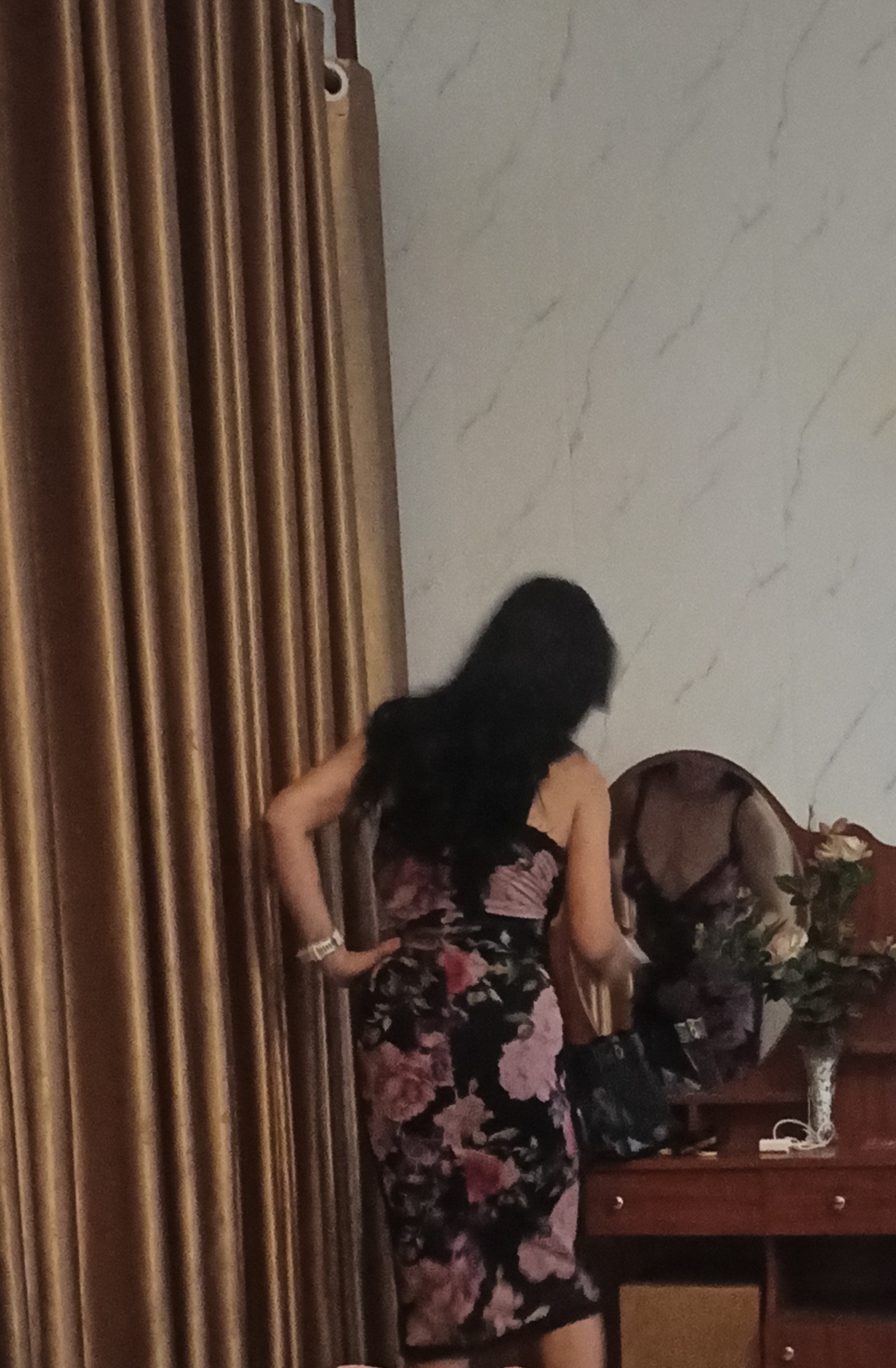 Đi từ phòng này qua phòng khác trong nhà nghỉ nên áo vú + quần lót không mặc cho tiện