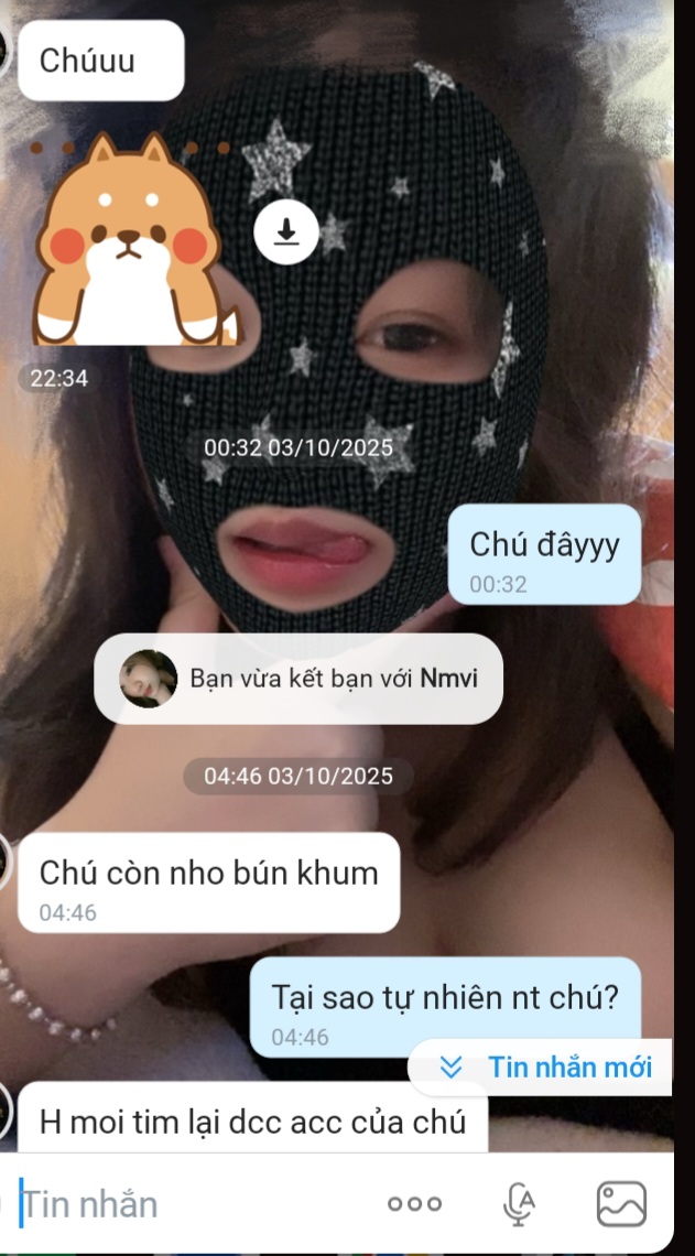 Múi mít 2k9 này t cũng match trên litmatch chừng 1 năm rồi, cũng nói đủ thứ chuyện rồi nhưng do năm ngoái ẻm chưa đủ tuổi, nên t cũng tìm cớ để né... xóa chặn fb, zalo các kiểu để đến với các múi mít khác. Ẻm chắc cũng xóa sdt t rồi nên k còn cách nào ll dc nữa, t cũng chẳng nghĩ gì nhiều vì múi mít thì đầy ra đấy, mà ẻm lại ở HP, xa xôi vl...