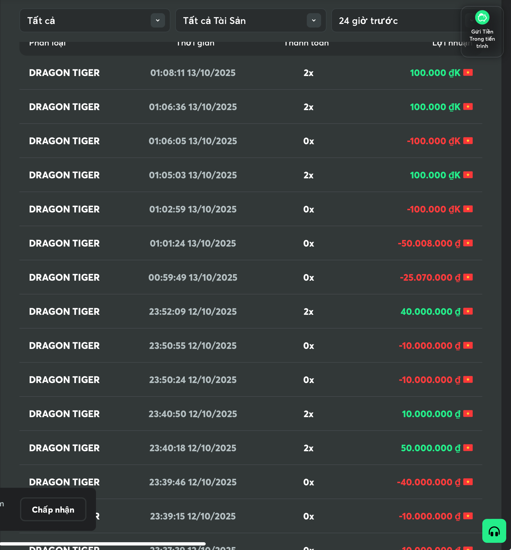 Lúc đầu tao vốn 2c đánh 15 ngày ăn lên 40M nè.rồi 1 hôm chỉ vì tiếc vài triệu tiền nhậu, nạp vào tính ăn đủ tiền nhậu thì rút này. Rồi âm lại 35M luôn . Chán. Thiết nghĩ ae nên nghỉ cbm dc rồi. Ngày ăn thì ăn bé, còn thua thì toàn thua lớn. Ăn thông 15-20 ngày thua trắng đúng 1 ngày