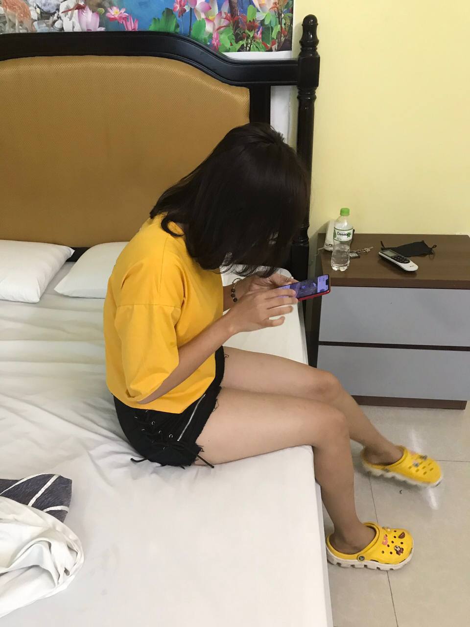 Thì nó bảo có, thế là về phòng trọ tao, nó còn bảo cho đi tắm nhờ cho tỉnh. Thì tao bảo là đừng tắm đêm rượu vào cảm, nhưng nó đéo nghe bật nóng lạnh tắm. Một lúc sau tao thay quần đùi áo cộc rồi, còn này tắm xong đi ra quấn mỗi cai khăn tắm dài đéo mặc quần áo. Má hồng hồng kiểu say rượu nhìn nứng phết, leo lên giường đéo nói gì cứ ngồi thù lù ở đầu giường tao thì nghịch điện thoại. Vì con này nó k xinh lắm nên kiểu địt cho có cảm giác lạ chứ k hứng lắm. Nó mới bảo tao là