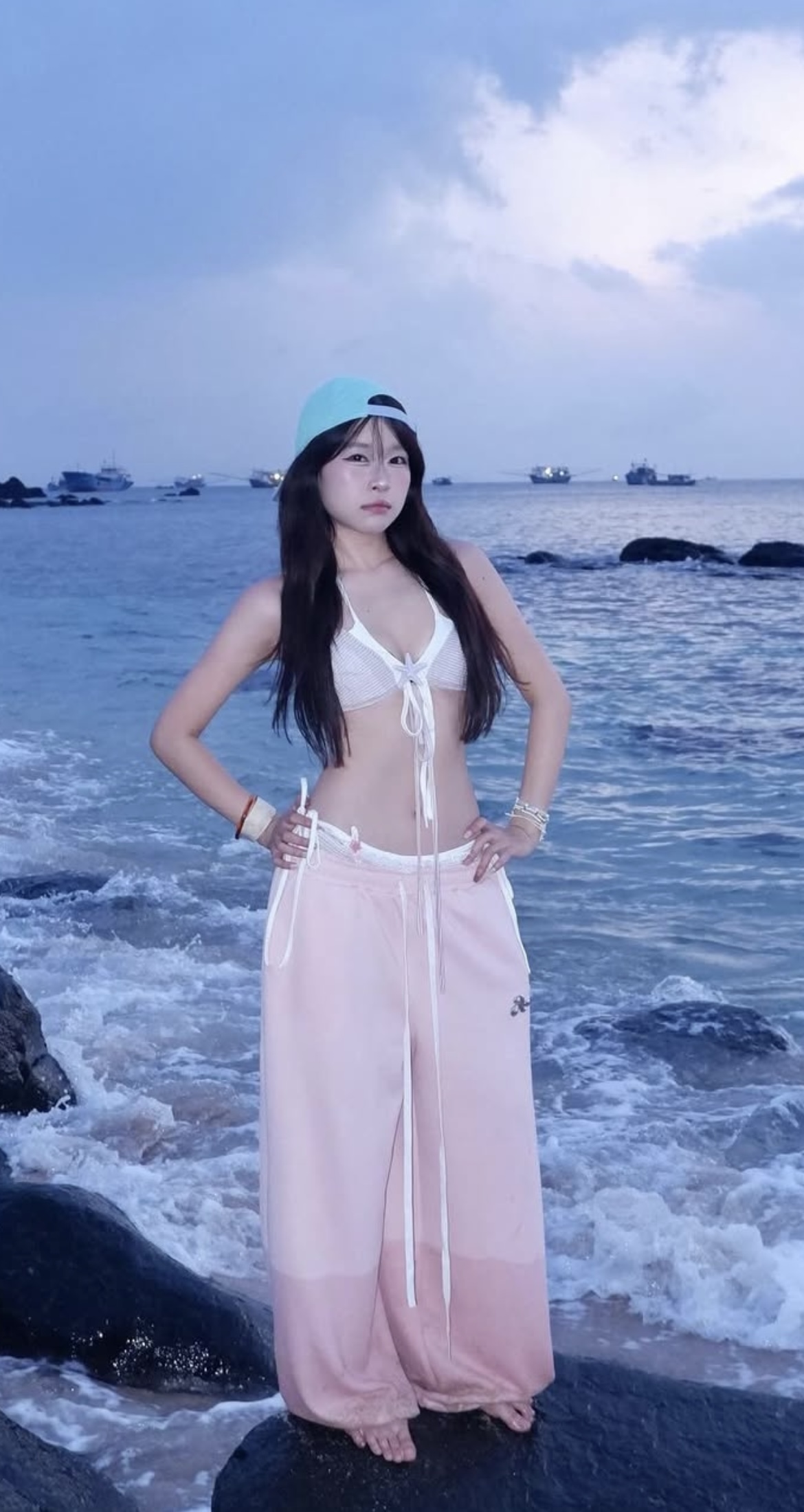 Con bé schannel này đây. Để t giải thích, cái trend này là hôn gió vào rồi đổi cảnh khoe cặp đùi, có đứa banh háng ra khoe khéo. Con bé này quay clip lên rồi tới lúc cần banh háng thì nó lại check xem tụi m có cửng không trước.