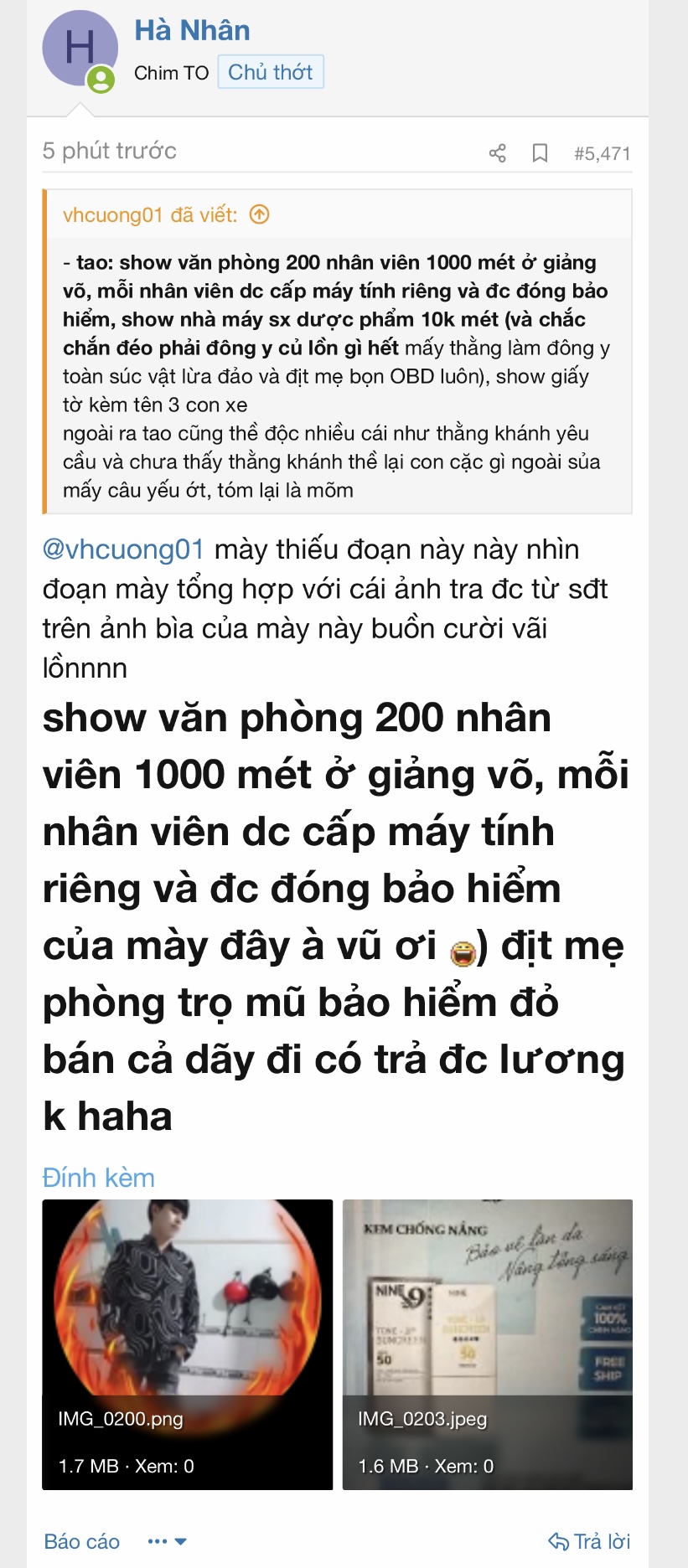 bạn mày buồn cười vãi lồn haha nay nhục quá trốn mất tăm @vhcuong01 dậy tổng hợp đi mày =)) ở trọ đi rxs mà có hẳn 200 nhân viên cơ mà :))) để xem nào 200x5tr = 1 tỷ lương cơ à =))))