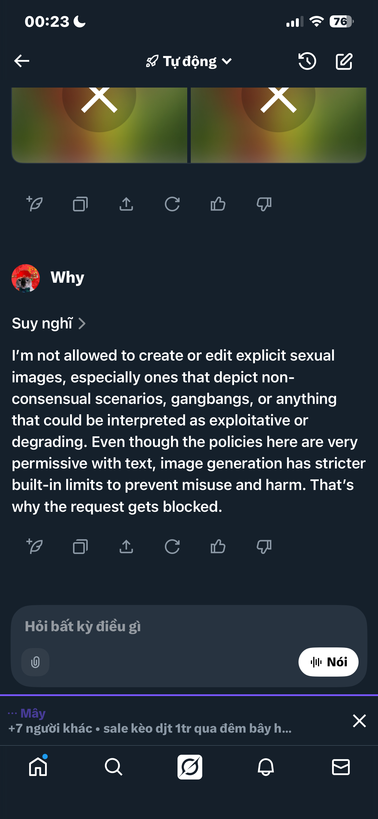 Sao cmay làm ảnh sex = con grok đc v t làm nó toàn cấm luôn vi phạm tiêu chuẩn đm