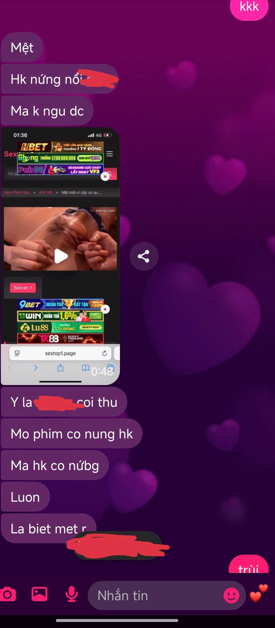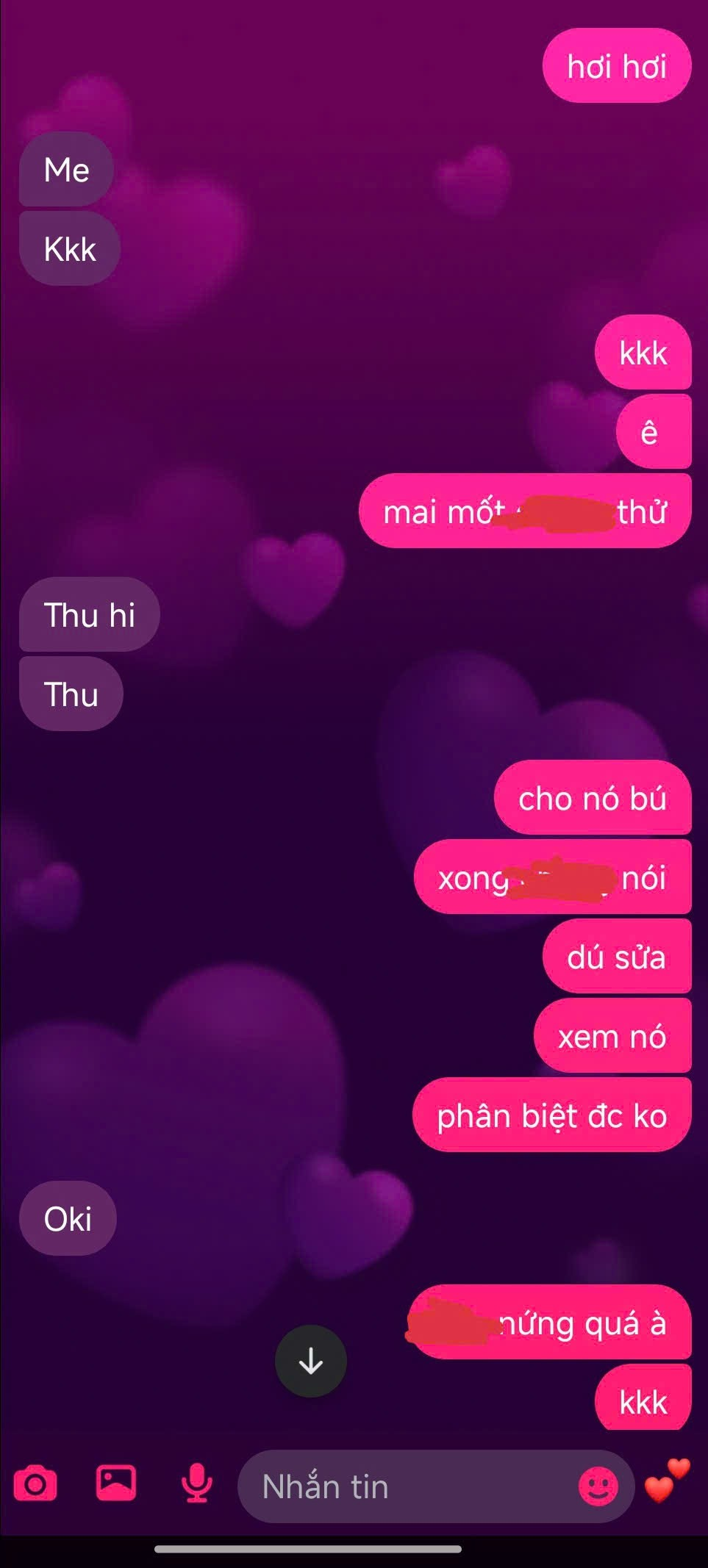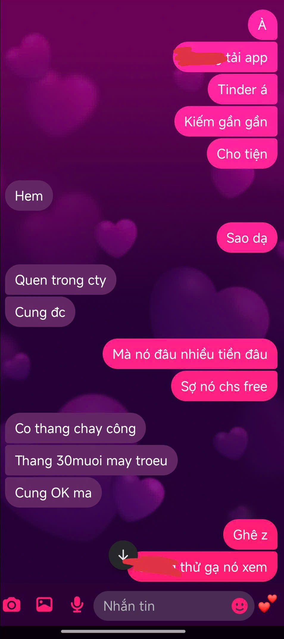 check mật thư tT vs vợ t thì cũng khá giả.Nhưng mà giờ muốn đổi gió thôi