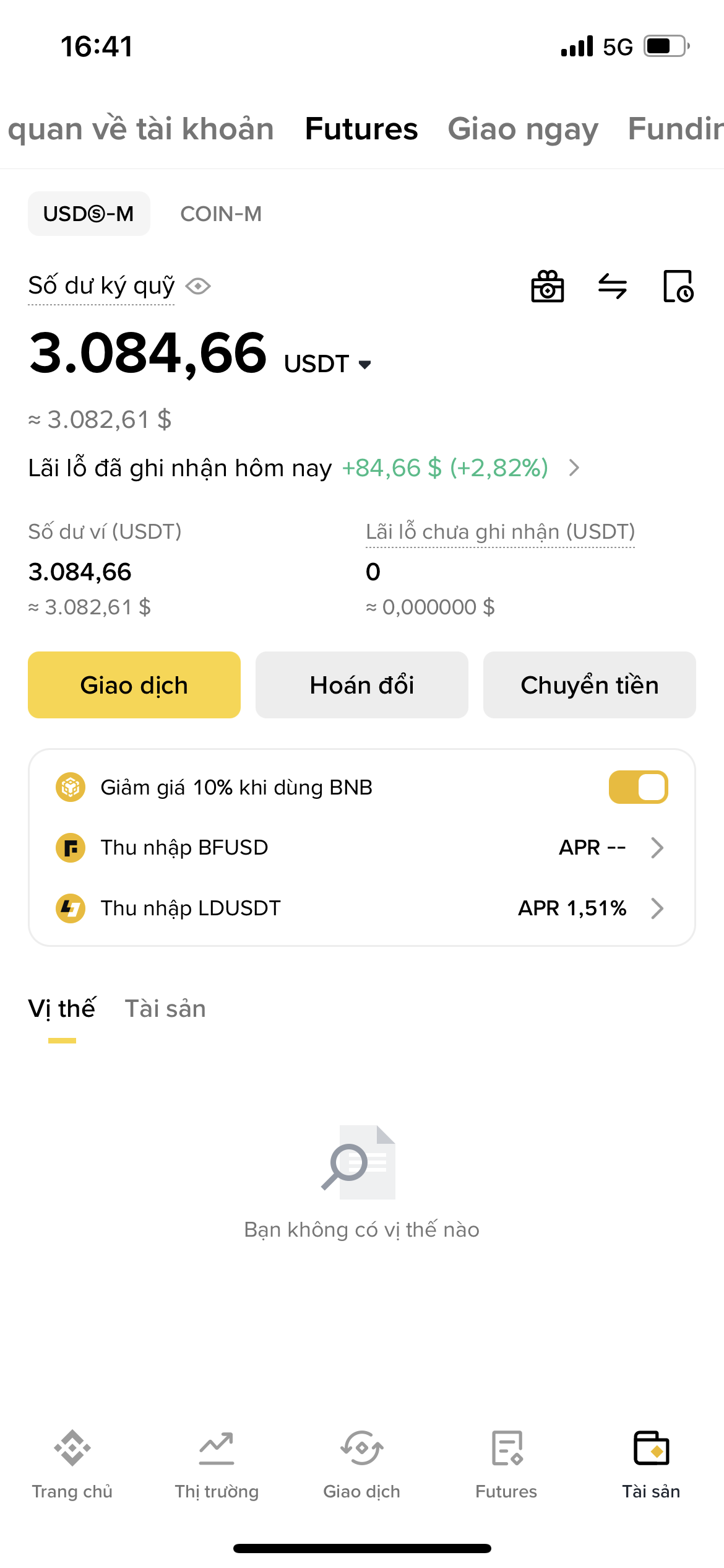 phí qua đêm nữa tmlCái này do m bị phí funding ngược thôi. và nó cũng phụ thuộc volumn. Nếu gặp phí funding thuận thì mày được trả 50u nhờ giữ lệnh nhé