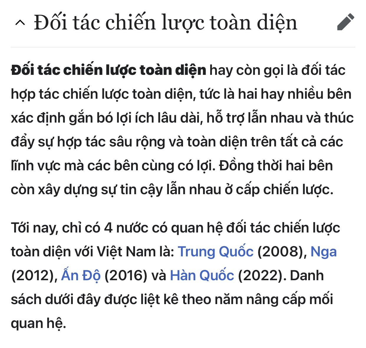 Quan hệ Đối tác chiến lược toàn diện?​