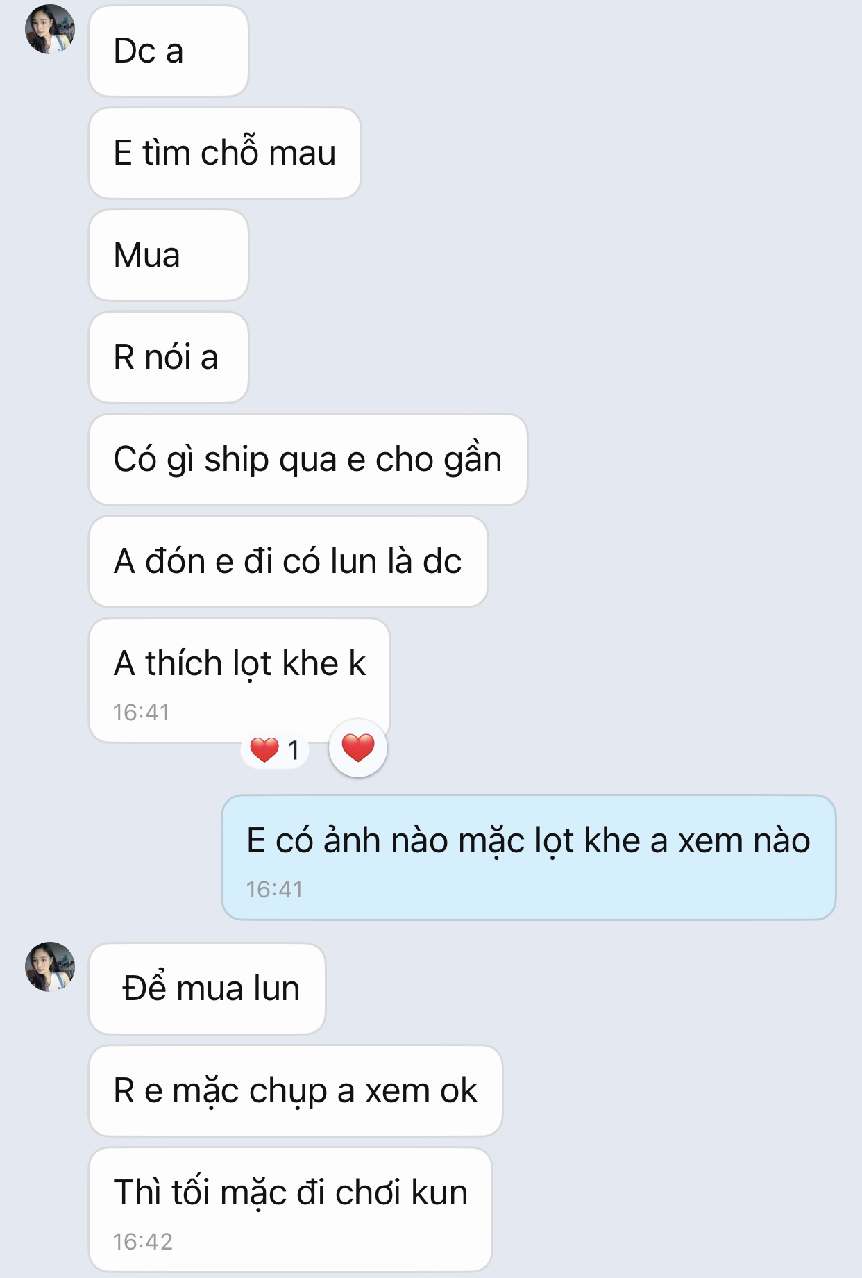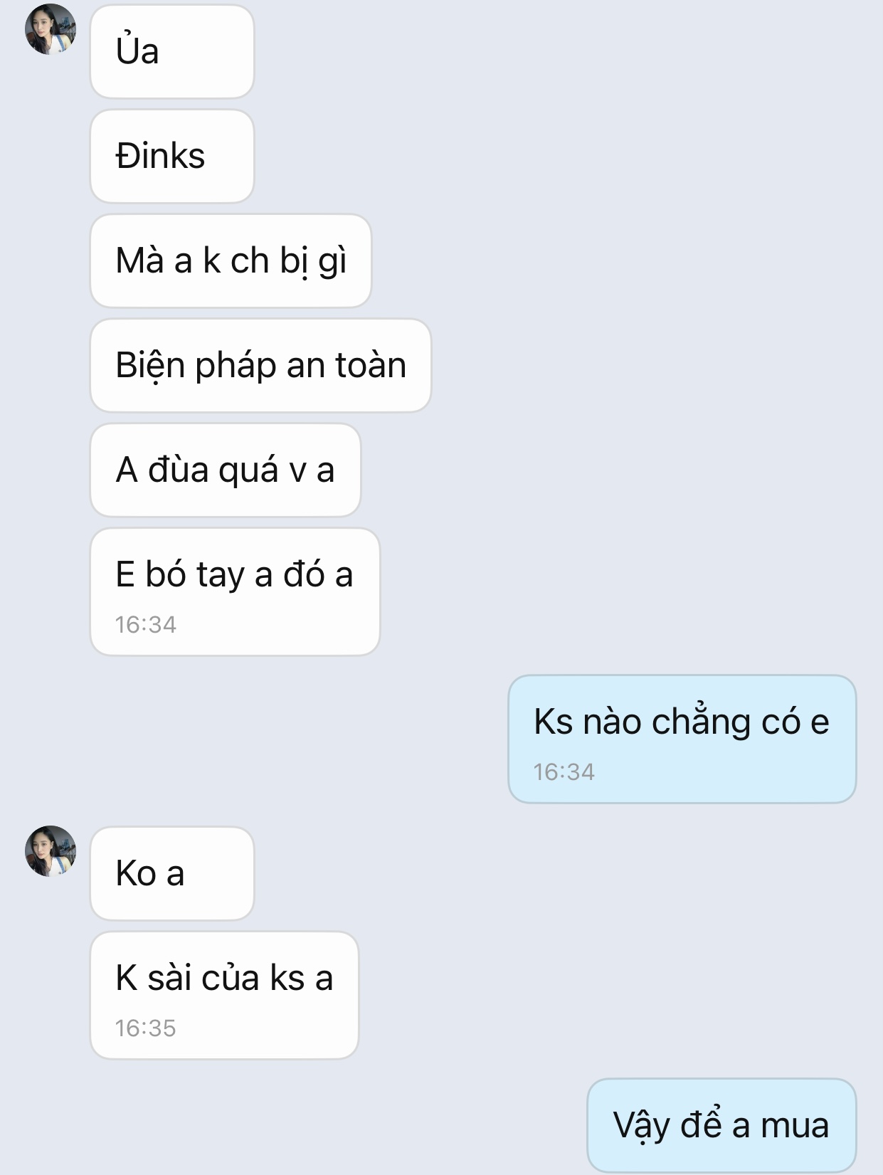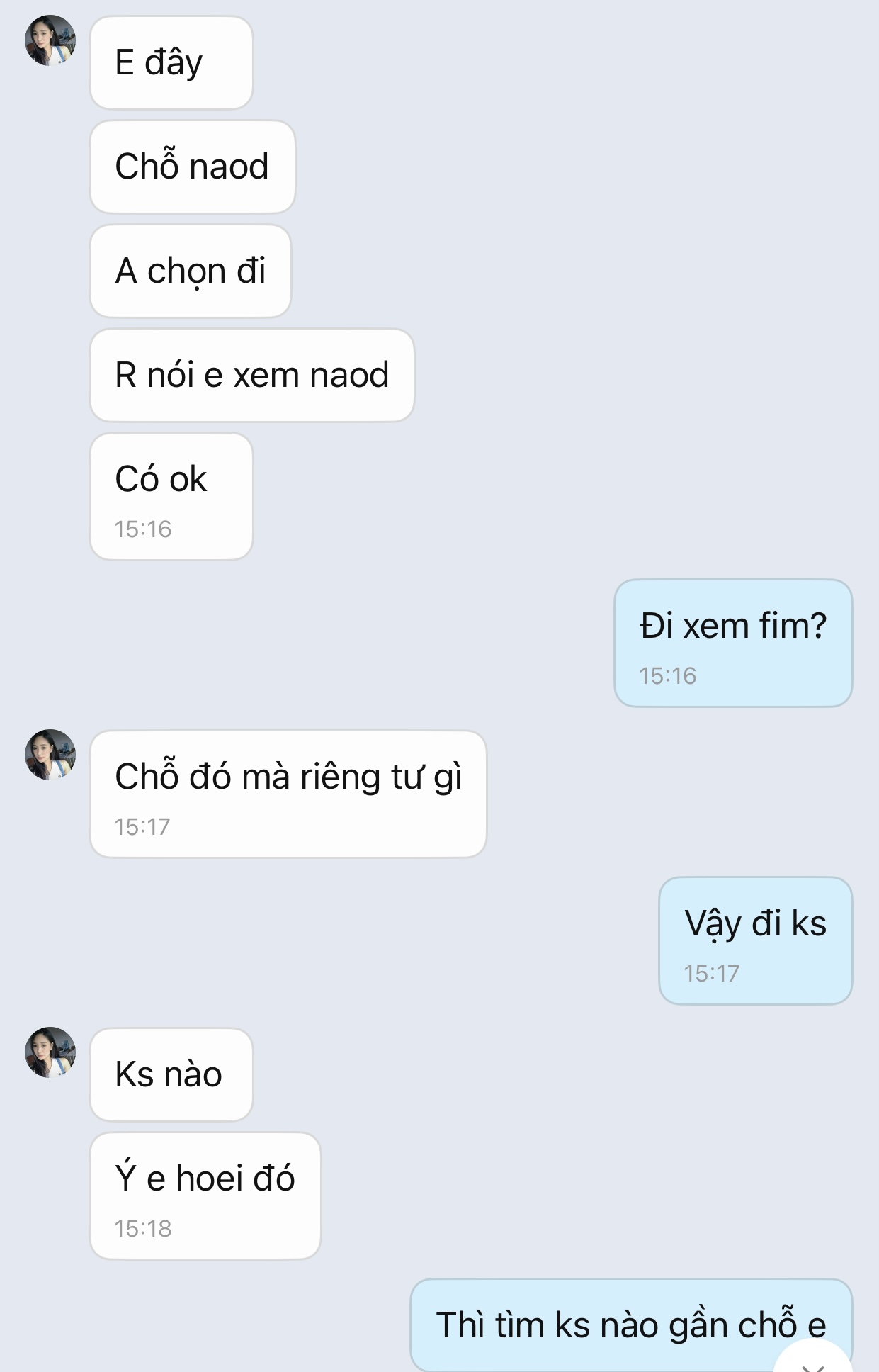 Quen e qua ứng dụng hẹn hò EZMatch, zl nói chuyện khá hợp, e gt làm kế toán nhà chung cư gần bến xe Mỹ đình. Lúc đầu thấy ngoan hiền sau nc mới dần lộ ra là thần dâm. Trung thu rủ đi chơi nhưng chỉ thích đi ks tâm sự cho riêng tư, còn yc đặt bcs Nhật vì chỉ thích loại đó. Tuy nhiên mình hơi rén nên nhờ a e check var xem đúng người ko.