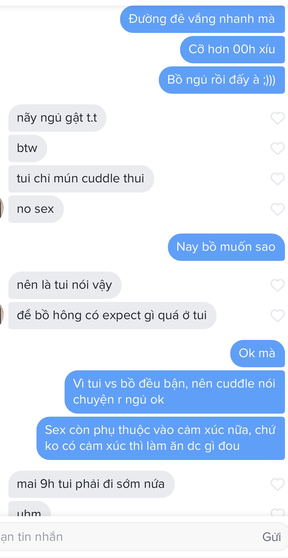 Tao cũng đang có fwb với một em nhà giàu, không bao giờ đề cập đến tiền bạc hay vật chất, chỉ cần buổi trưa thỉnh thoảng qua ôm em ấy ngủ và cho em nó bú liếm là em nó vui rồi. Em nó bảo đó là cách để chữa lành trong cái giai đoạn ở nhà chờ bố mẹ xếp việc cho =))