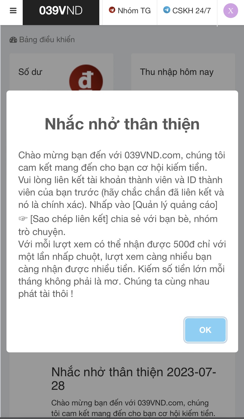 Anh em lưu ý. 1 Click là được 500đ . Không vốn không lừa đảo