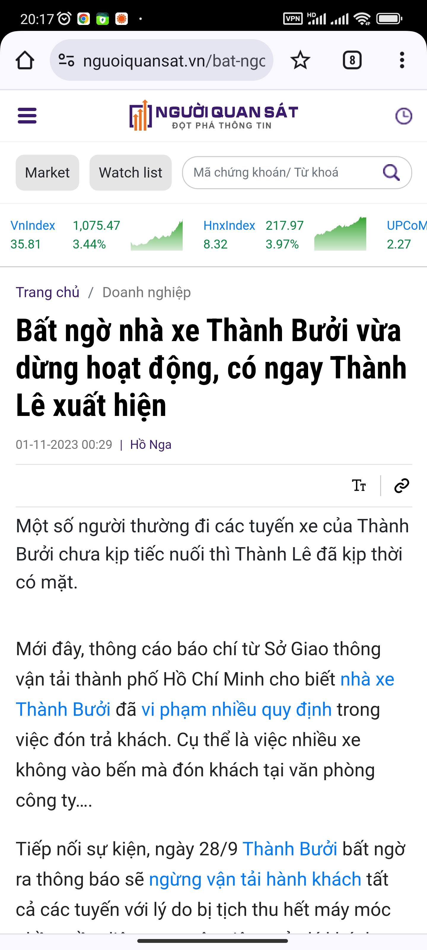 Công ty Thành Bưởi) theo kết luận kiểm tra của sở đối với doanh nghiệp này hồi tuần trước.
