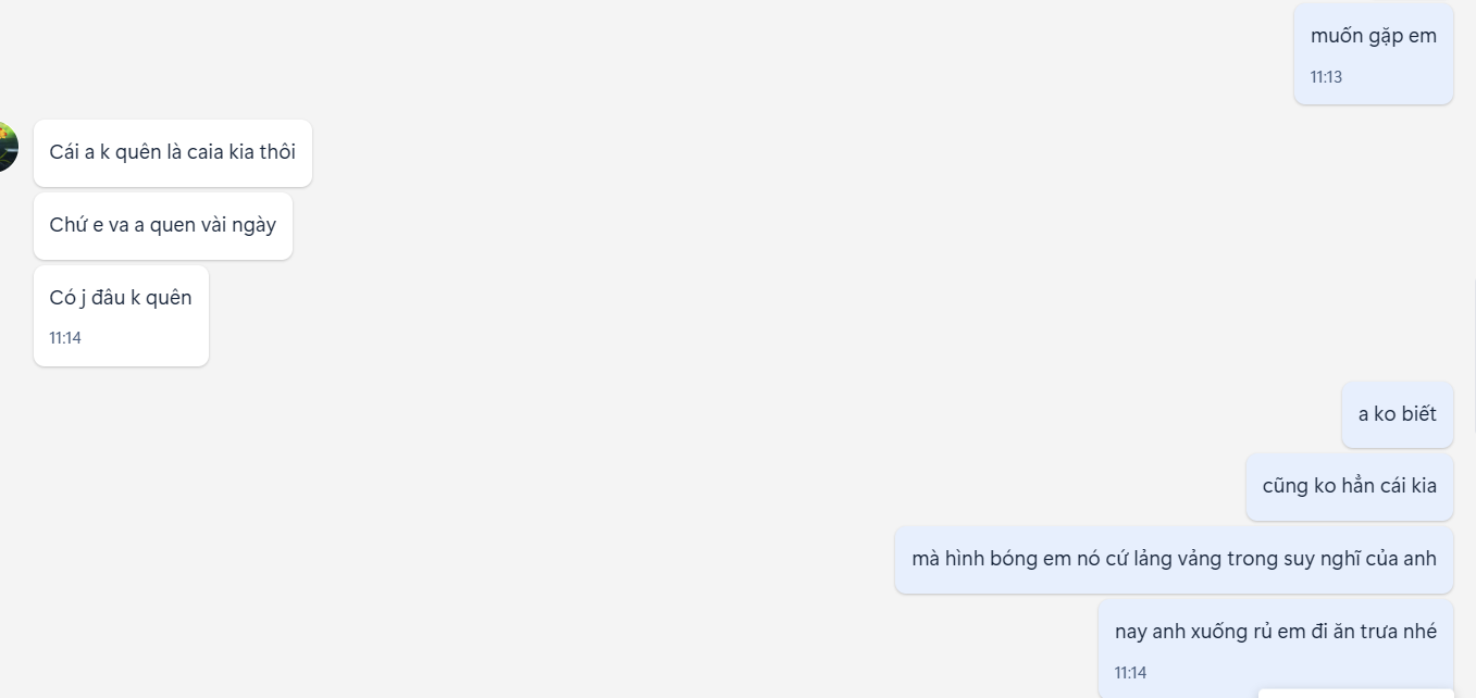 Nói chuyện qua zalo được 1 thời gian rất hợp nhau, bọn tao còn video call trong giờ làm tắt tiếng chỉ để nhìn mặt thôi, em ấy đeo kính cận, trí thức, trắng và nhìn mặt khá thanh tú